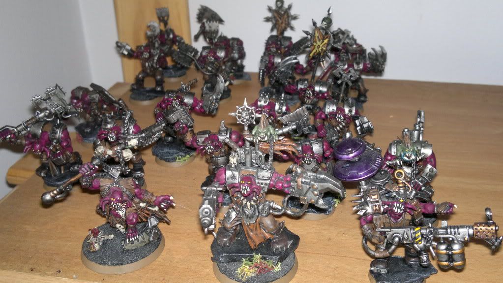My new Chaos army uses a tzeentch theme. Squad of TSons (9 strong) are the primary members. Other chaos marines wanting in can't join if their numbers are more than 9. Although they have pledged their life to tzeentch so they get a mark, they can't get more blessings until they number 9.