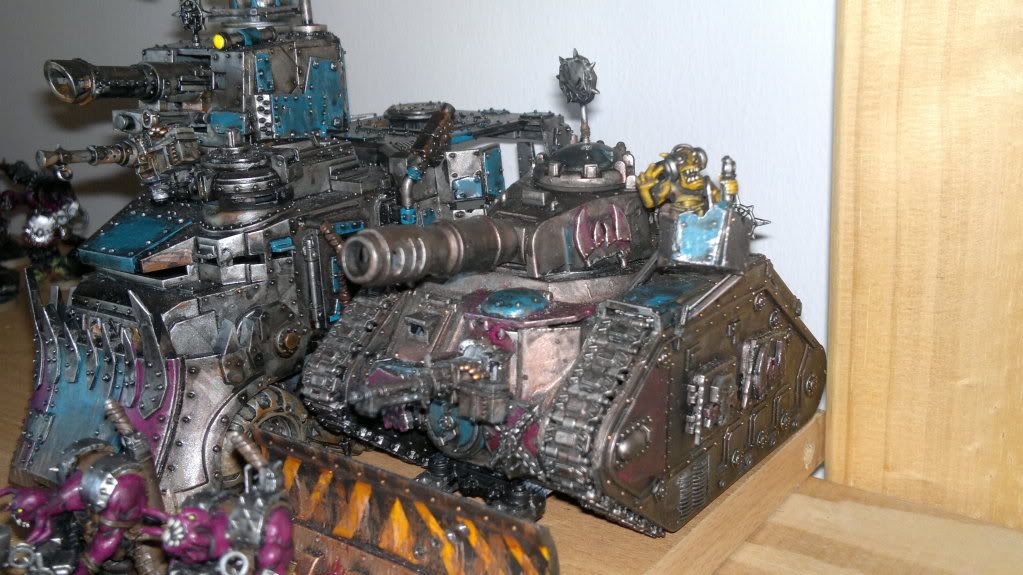 I am currently working on a themed IG army for a campaign my gaming club is running. They are in close proximity to a forge world so there are massed tanks and mech infantry. The planet they live on has skilled mechanics of their own so tanks are maintained for long periods of time. To represent this in the game, I locate people looking to trade off or sell older edition tanks mixed in with the newer kits so that no two tanks will be exactly the same. In fact NOTHING in the army was purchased new. It was all acquired through trades or buying second hand and refurbing them.