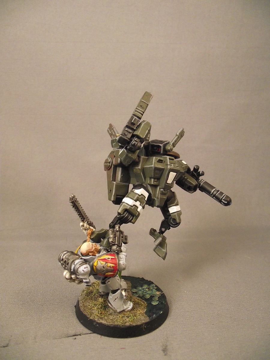 Ok, so during a recent game, a friend who shall not be named dropped this model and shattered it into several pieces. After rupturing his spleen for that outrage, I decided to remodel the Crisis Suit a little bit, and here are the results.