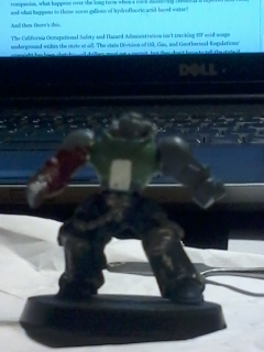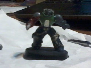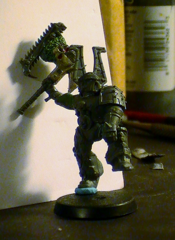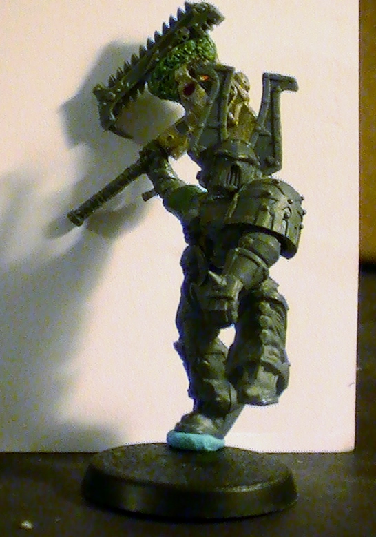 The green tubes on the back are a nice addition to the model. Perhaps you could give the arms a bit more definition with a wash, that way we could see more clearly the muscles on them.