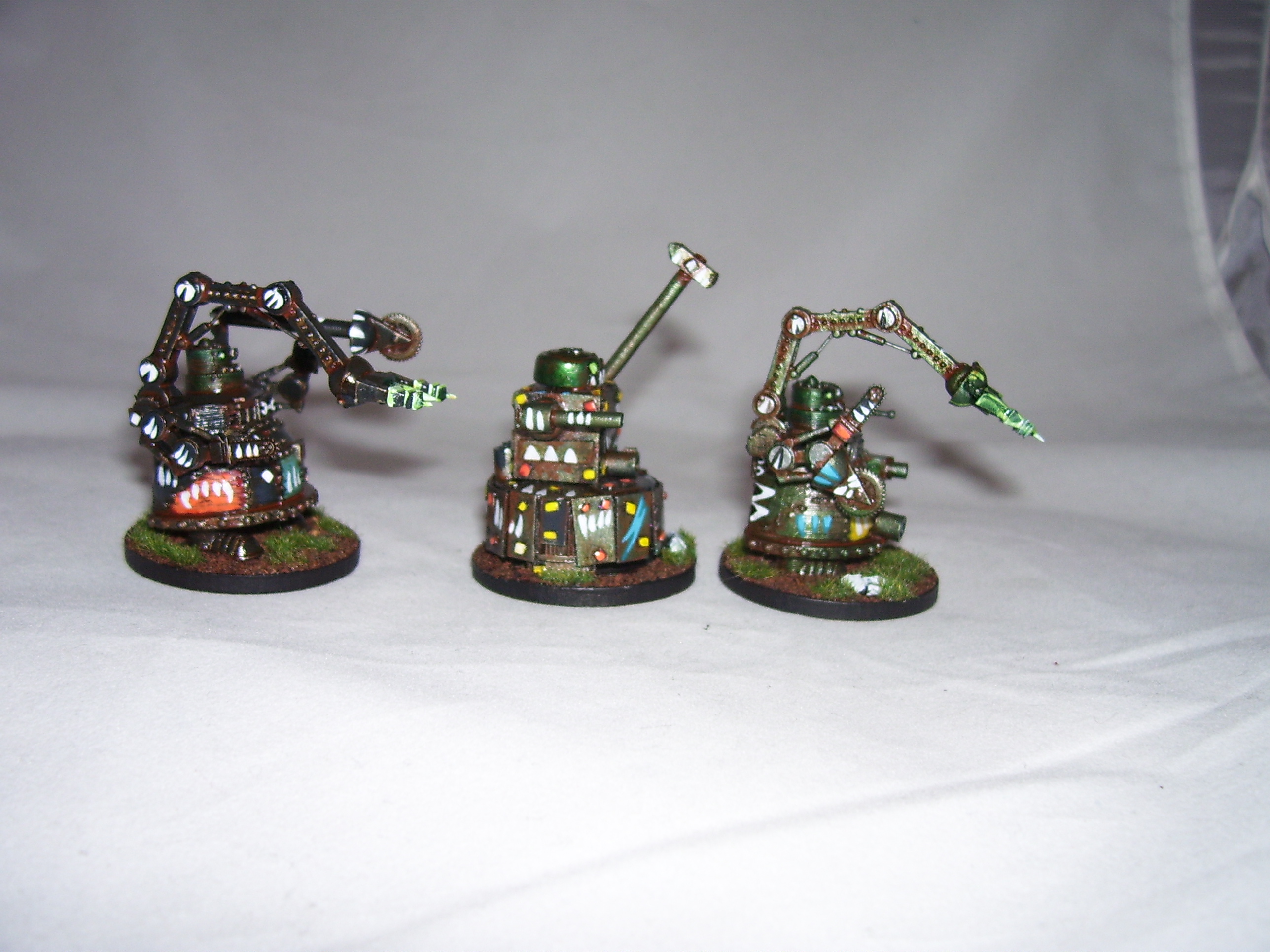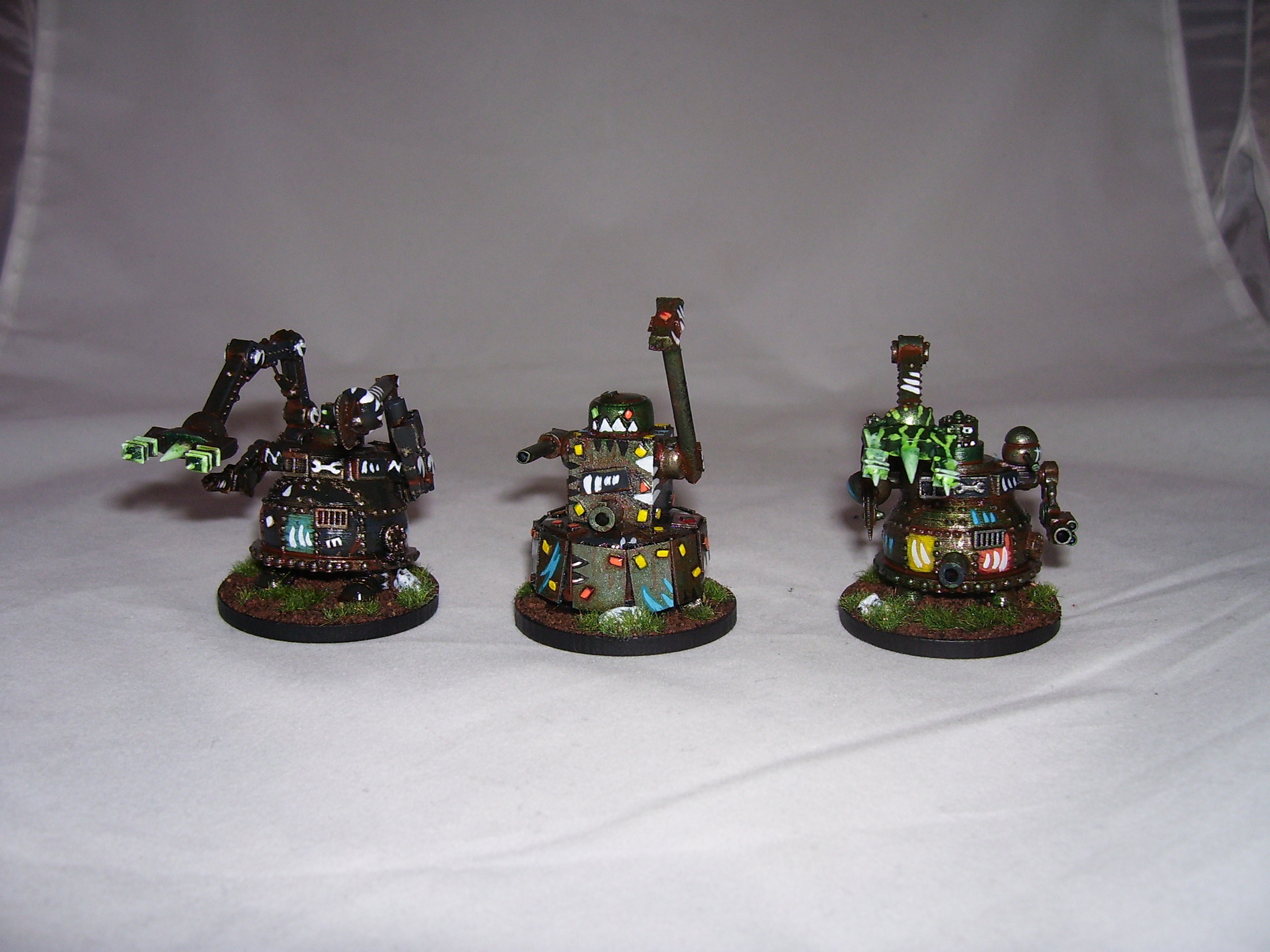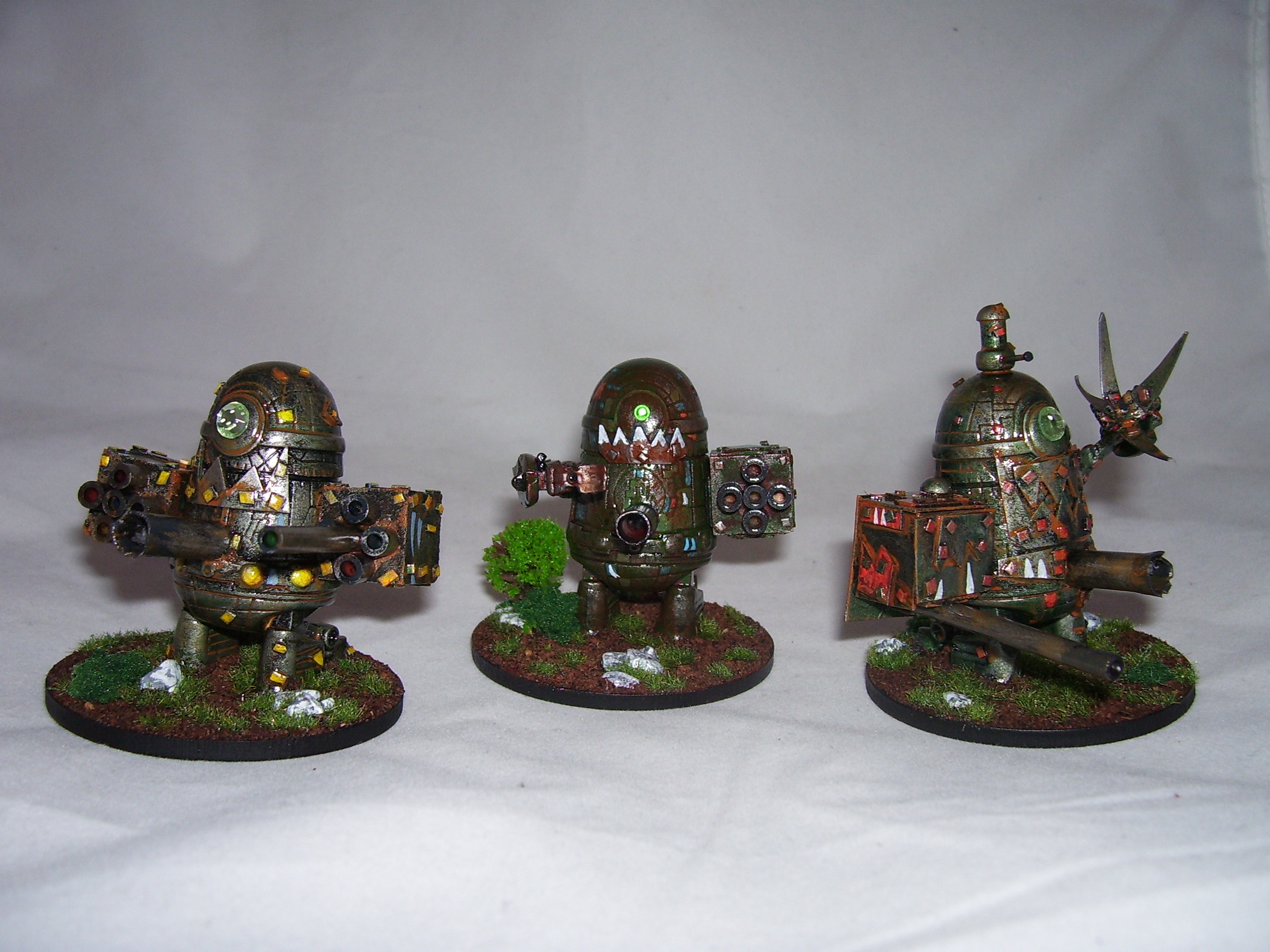 2 Mekboy Gargants and a junk build Stomper that in current speak would probably be a Super stomper size wise ( i don't really see the point of the SS when we have Stompers and Mekboy Gargants but the Stomper turned out larger than the GW models....).