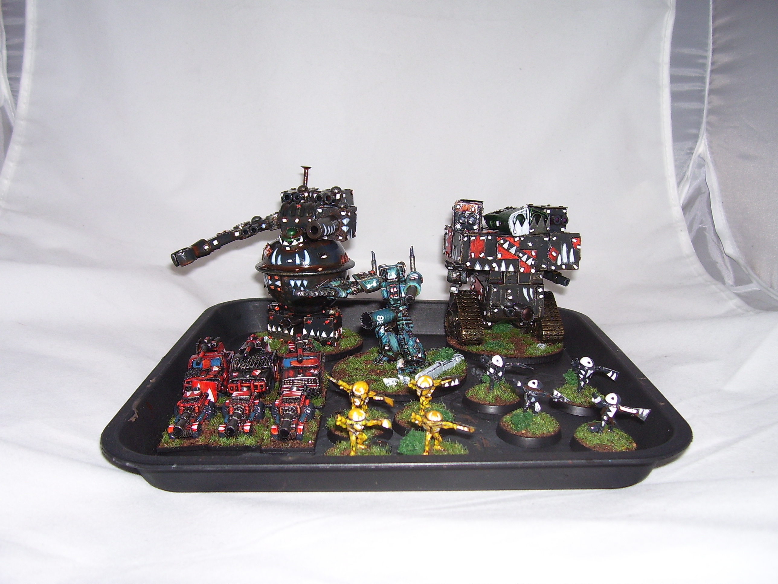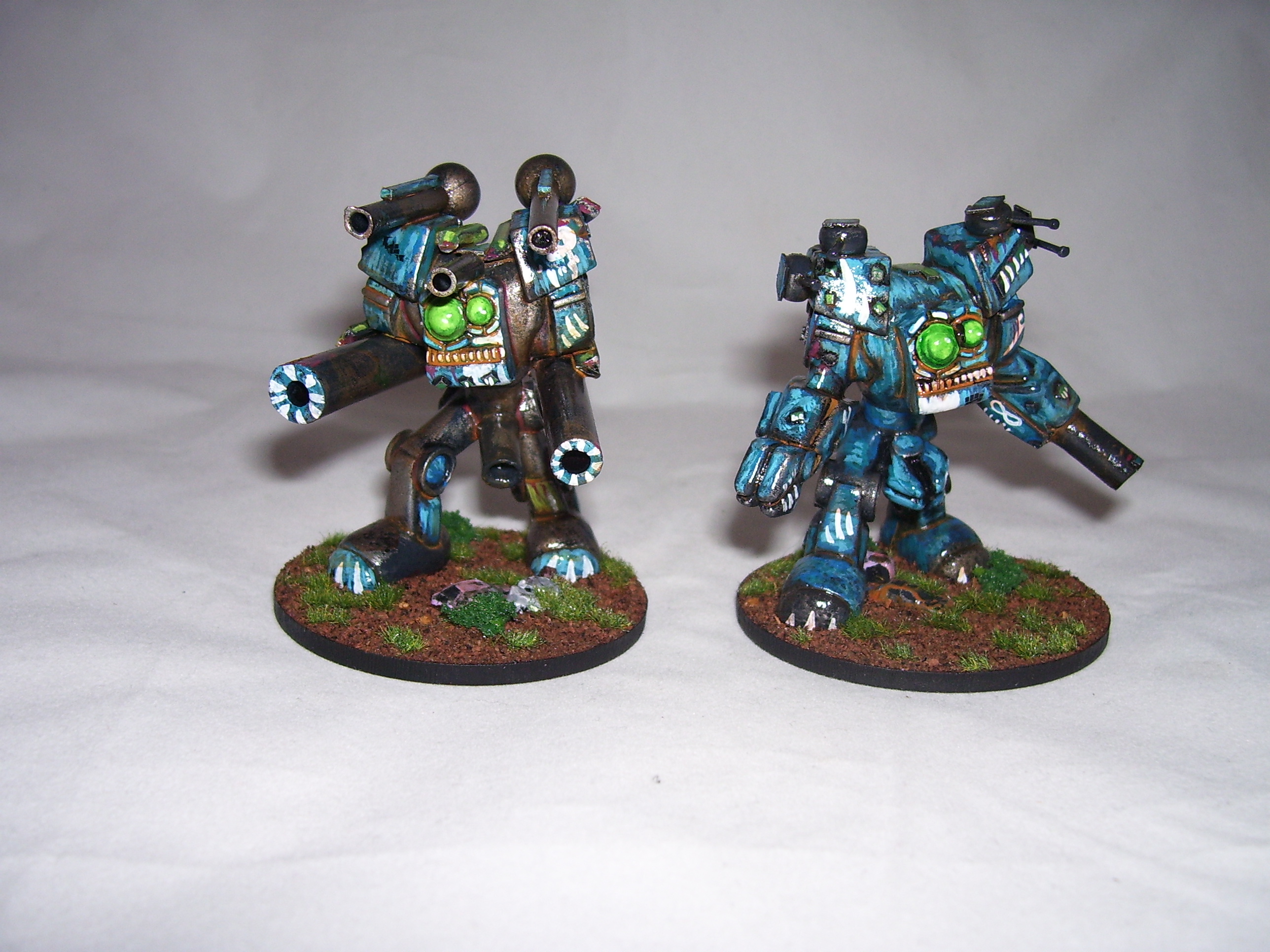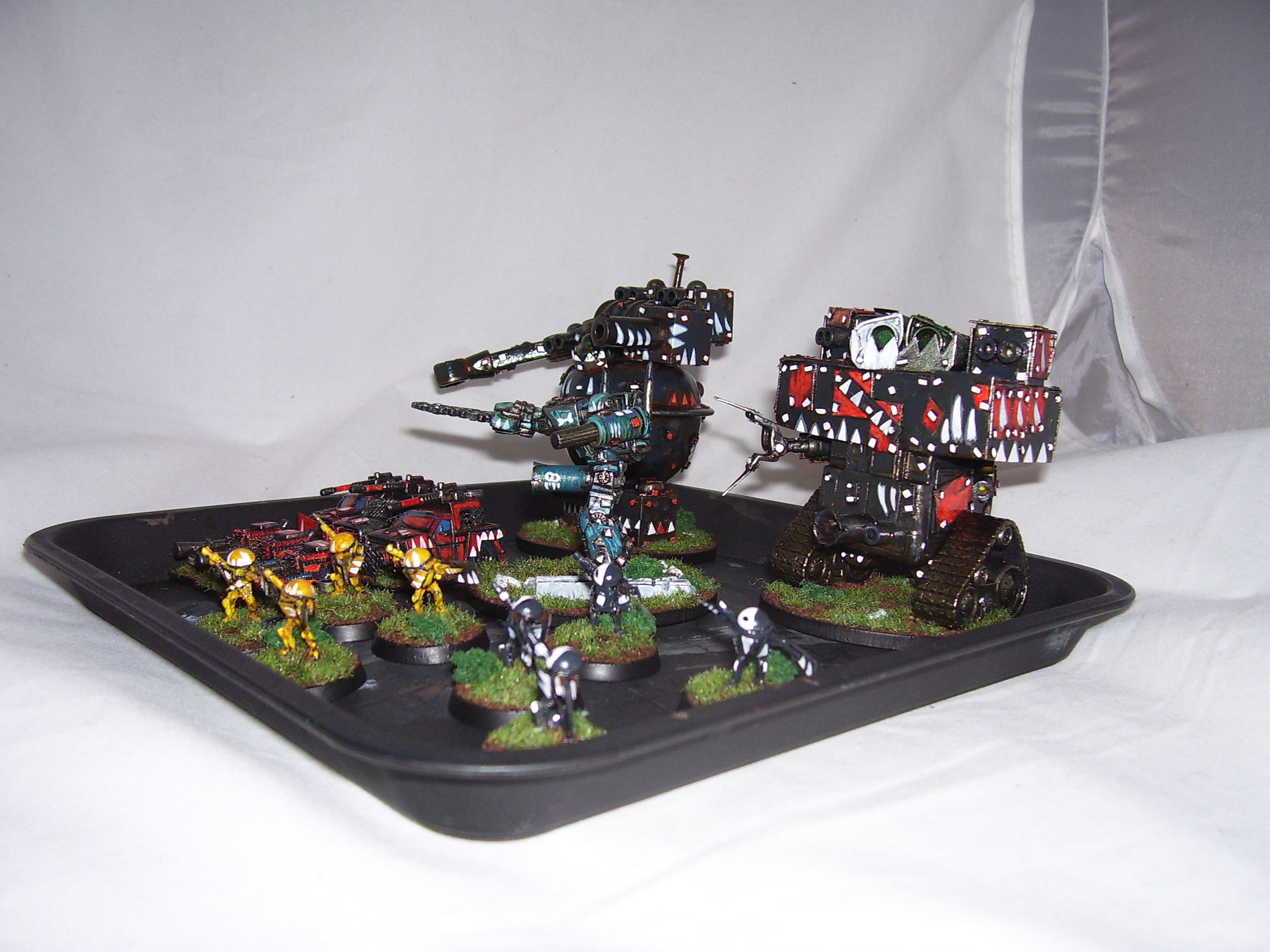 Two Goff Gargants and a third looted Titan for the Death Skulls, Four Goff Dreadnoughts, four Bad Moon Dred's and six Evil Suns Spleenrippers.