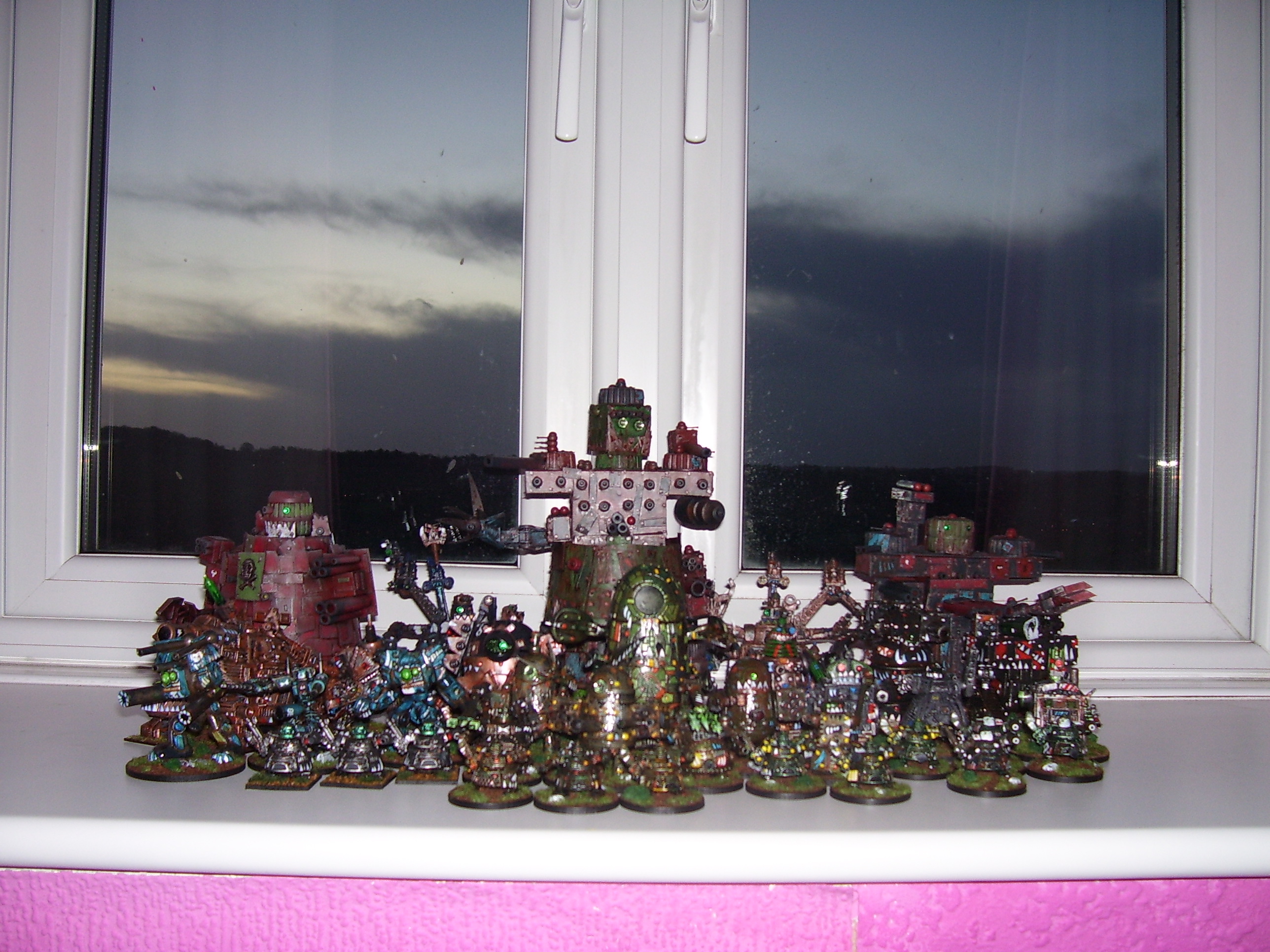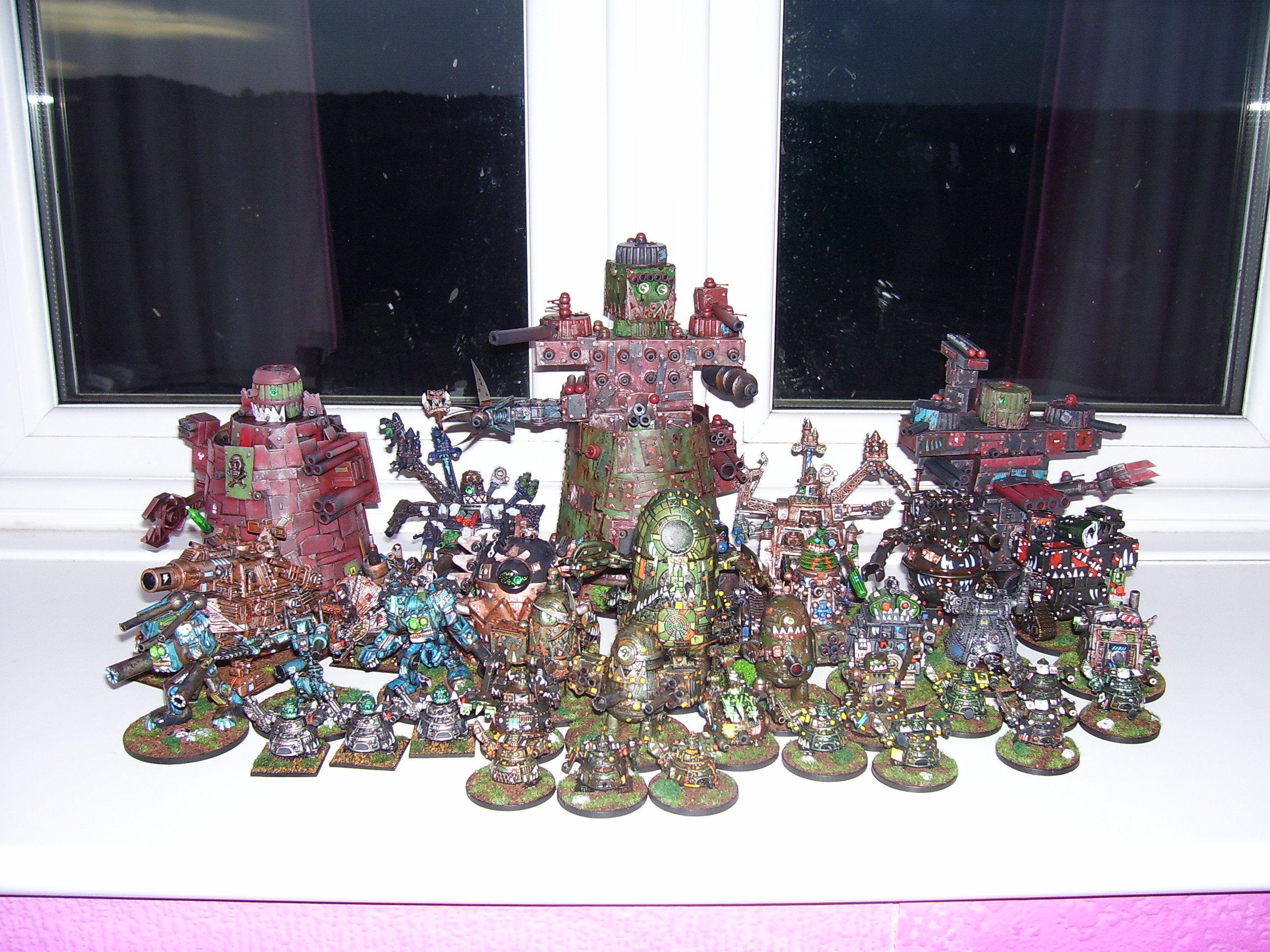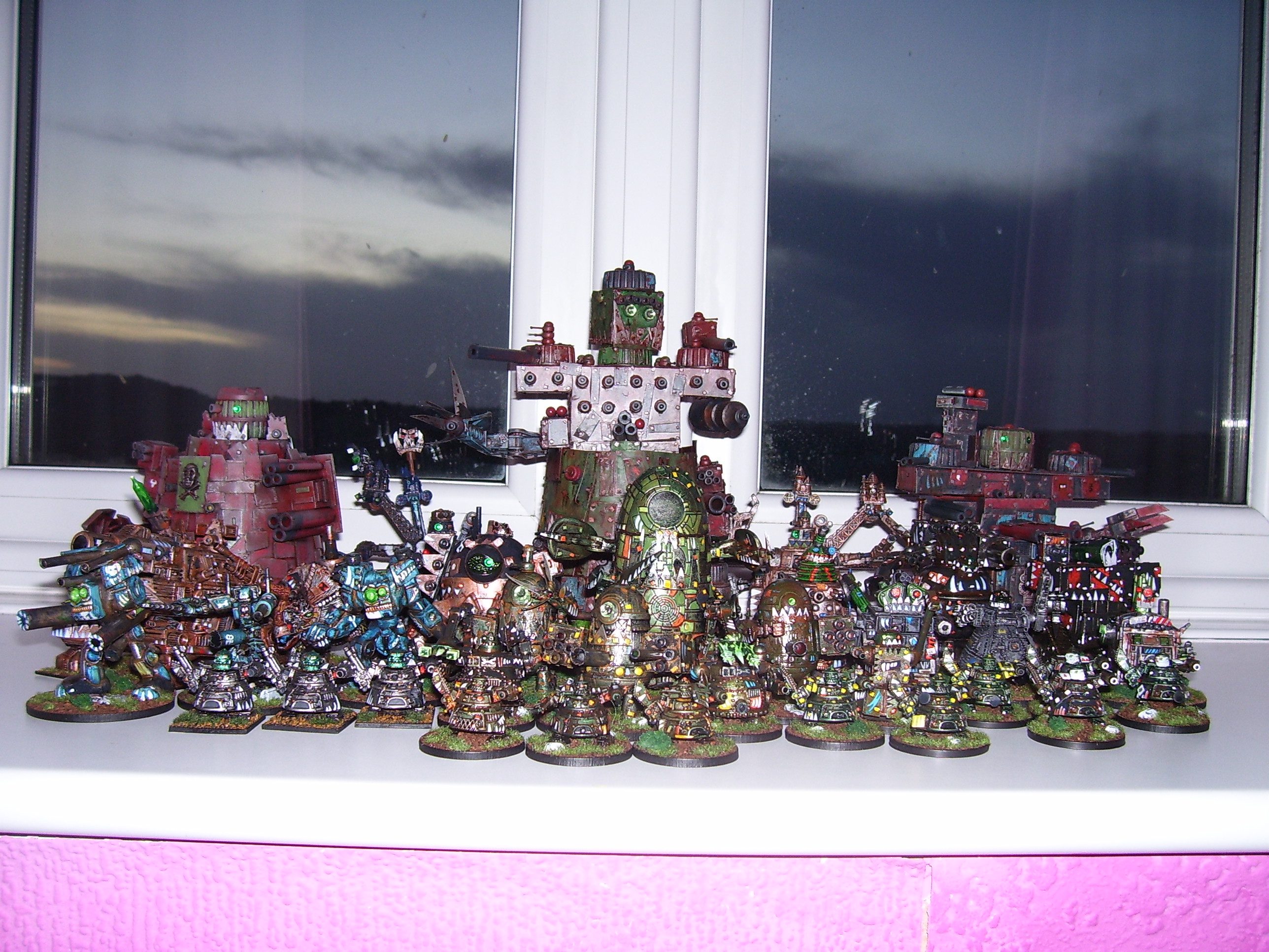 Two Goff Gargants and a third looted Titan for the Death Skulls, Four Goff Dreadnoughts, four Bad Moon Dred's and six Evil Suns Spleenrippers.