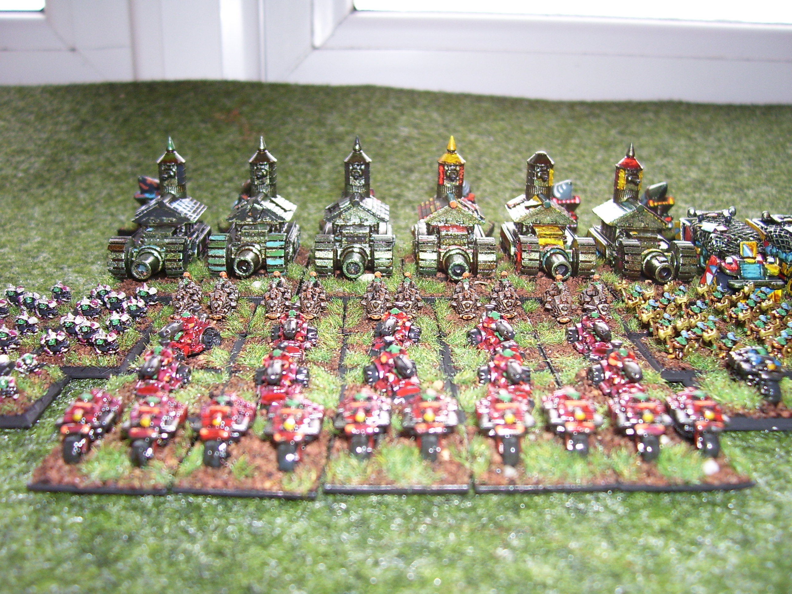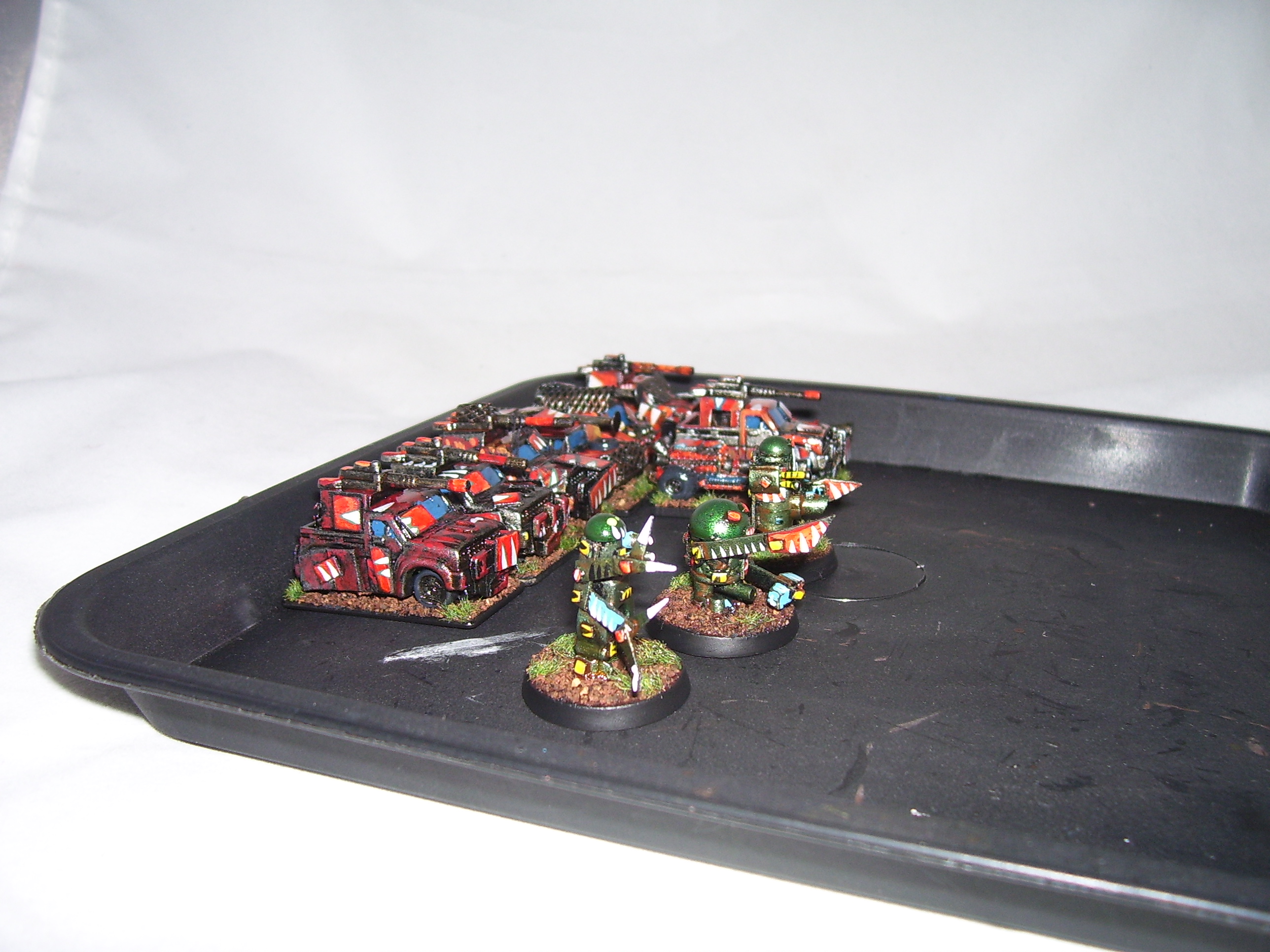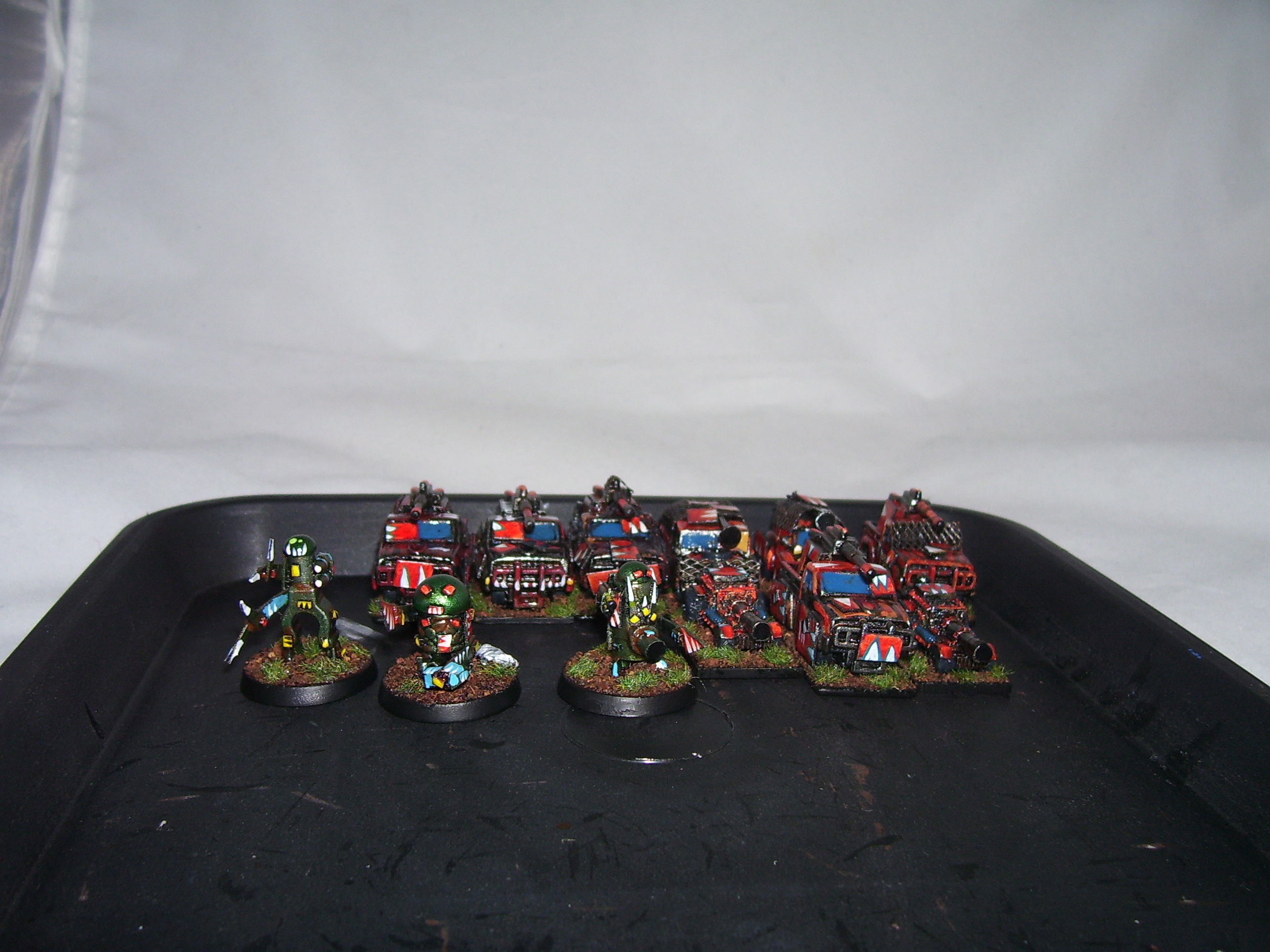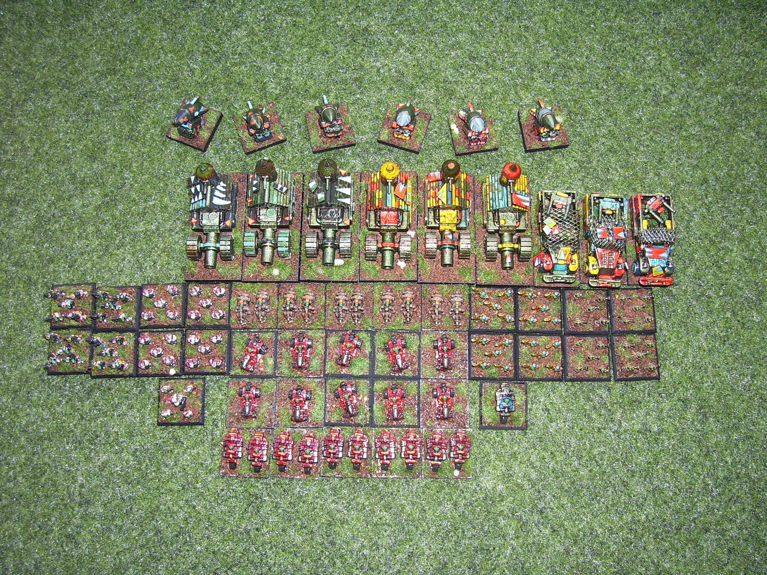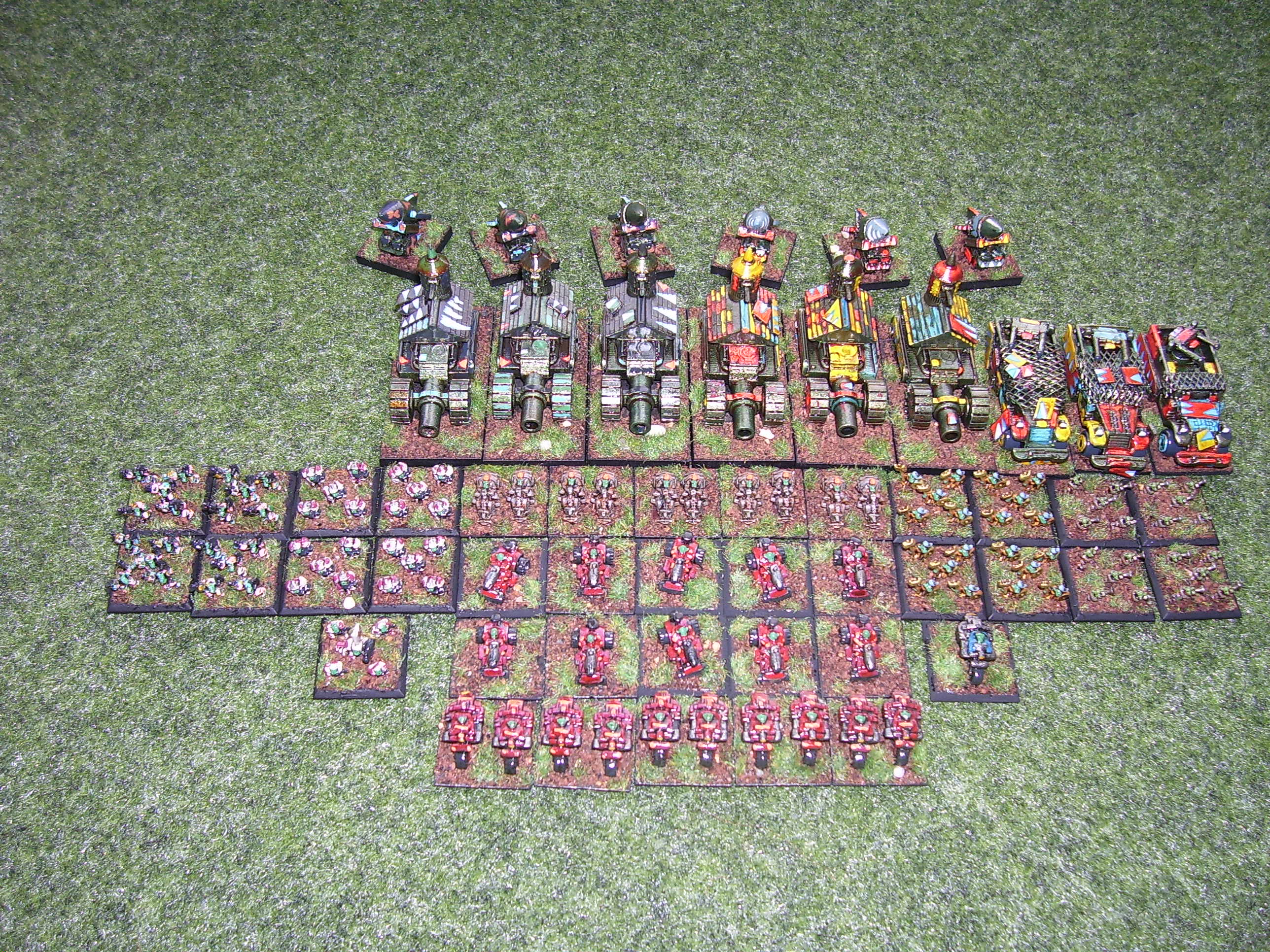 Very cool, I love the detailing on the battlewagons. Think they look a lot more retro-Ork in their style than the later 40k type designs, if you don't mind me saying (i.e. not everything looking like it is made out of sheet metal randomly hammered together and would fall apart immediately)