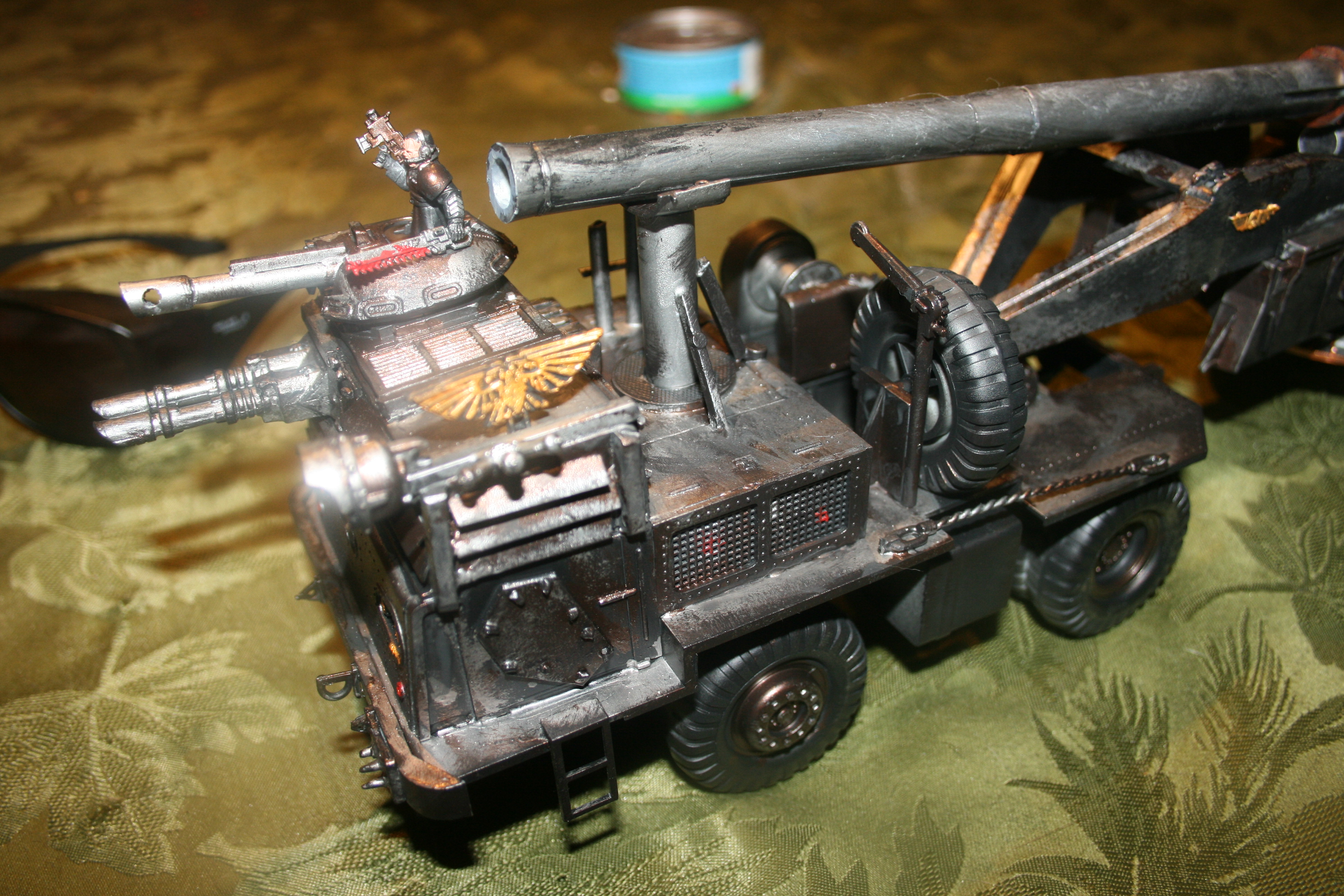 ex: take a ork Truck and refurbish it with more angular and bulky crew compartment (like if it was built by the Imperium) and fit 4 large tubes on the rear for a missile rack