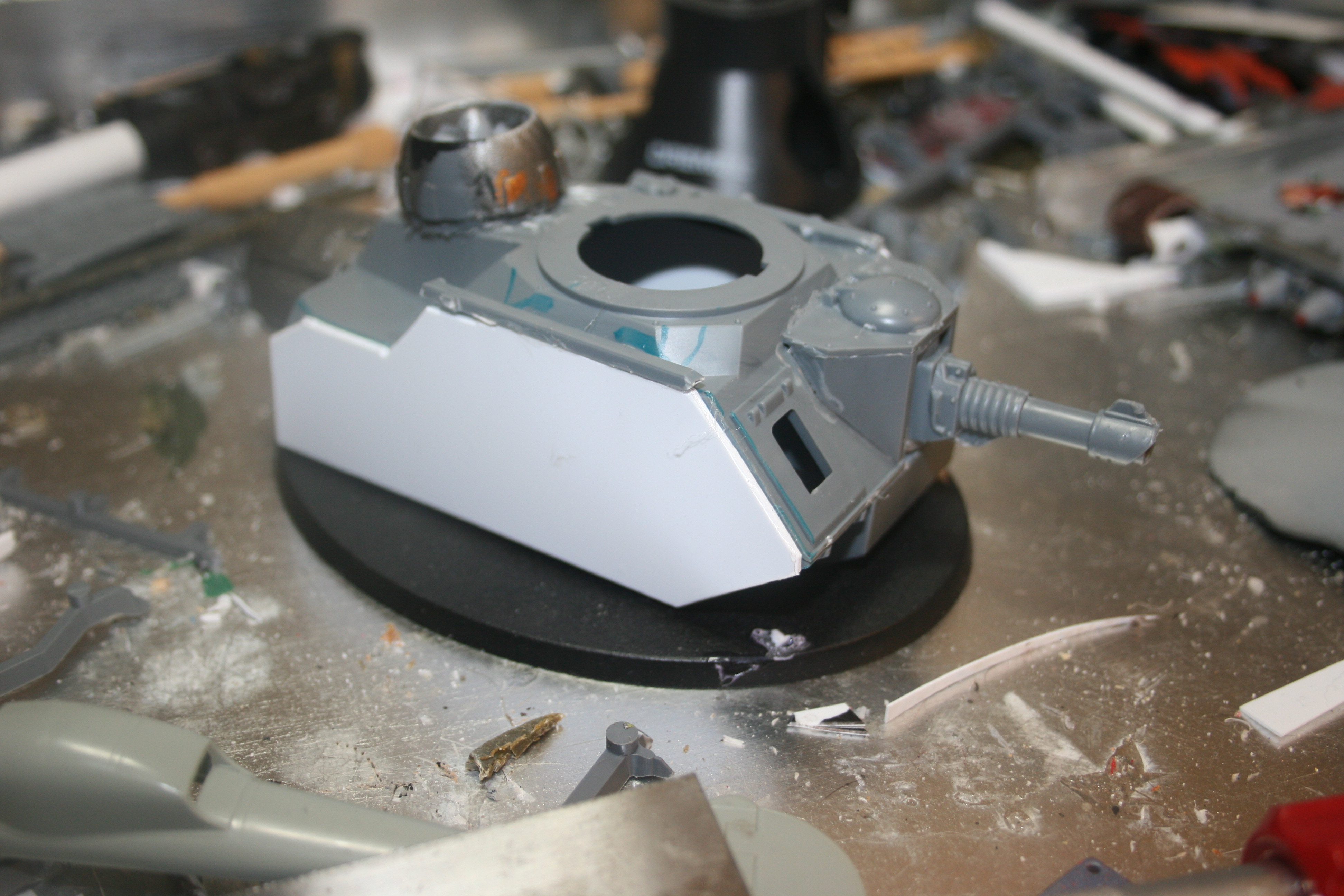 The Grav Exterminator sits on a base form a valkarie thats been chopped up and modified. ill probly end up giving it a proper clear hover tank base at some point but for now it has this one.