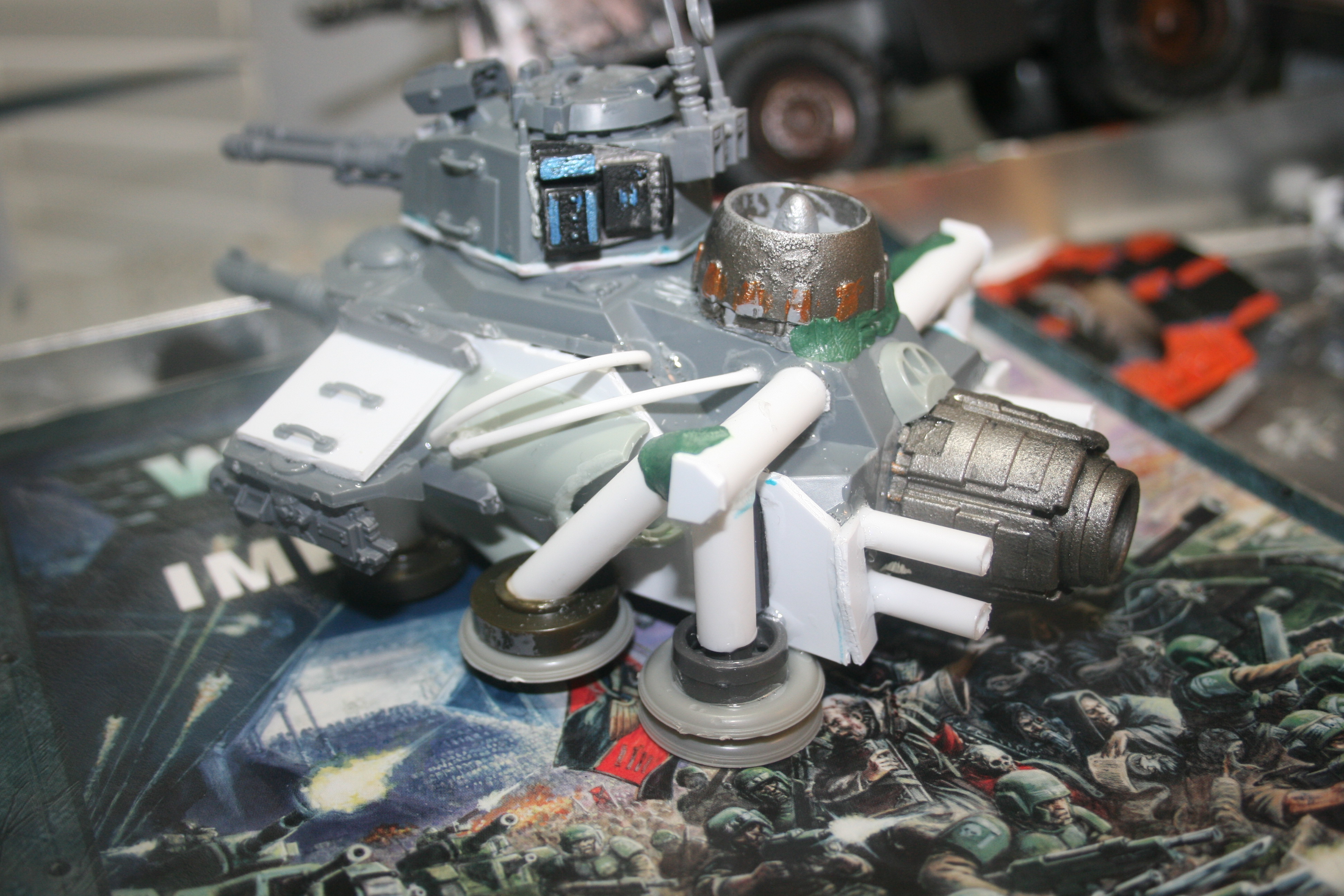 the design of the Grav system is similar to a Custodes experimental Grav Rhino i saw a picture of on the forums here on Dakka, with some elements of my own thrown in.