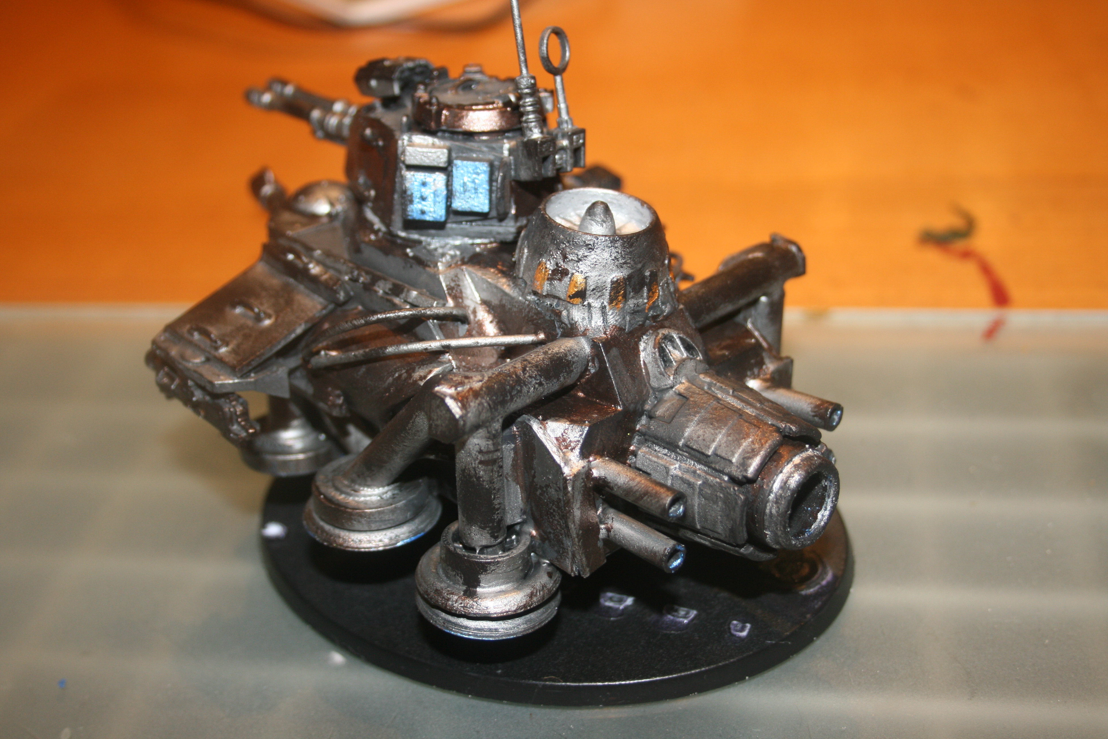 Steel Fury, Grav Exterminator: A Long lost prototype dating back to before the Heresey. "Steel Fury" has only recently been recovered from the vault on Schrott. its complex Anti Grav system developed eons ago allows it to float over the battlefield with a audible humming sound, with the roar of its Thusters accompanying it along side the rapid fire of its duel auto cannons and other armaments. The Grav system can only use a Autocannon set up as the recoil of a large weapon system would push the vehicale backwards due to it being suspended over the ground (meaning there is no traction).