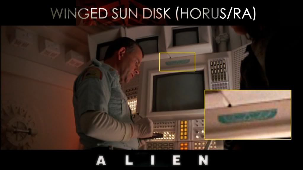 The Egyptian symbol was one of Ron Cobb's designs for the Weyland-Yutani logo.