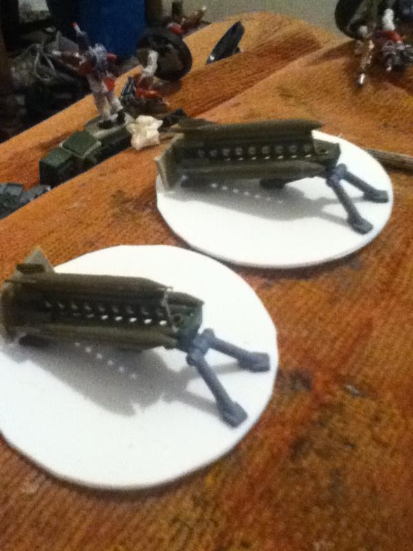 So im currently working on a more sci fi version of congrieve rockets, alas i havent any horse artillery figures, so infantry pressed into service it must be, but I think they could be handy. Im also giving some thought to making the rules/fluff for em. Im thinking of each can fire up to 3 missles a turn, depending on a d3 roll, each making up to 3 scatterable small blast templates. But to reflect the innacuracy even more I may make it 2d6 scatter. Il see if I can get some