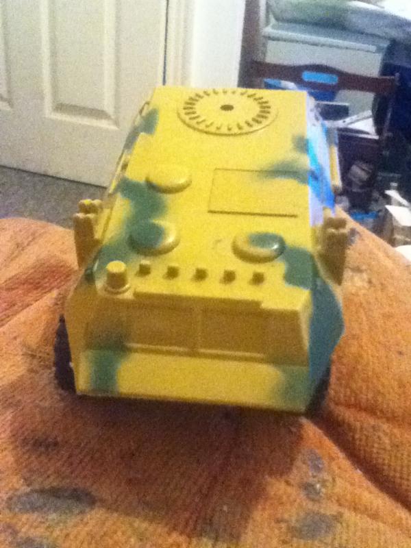 My biggest problem is cash, or a lack thereof so im always looking around for useful items for gaming purposes. I came accross a cheap plastic motorized toy tank in poundland which once the oversize gun turret and the battery control wire/controler are removed looks quite similar to the old russian Btr series of wheeled personel carriers. So Ive bought a few to see if they make reasonable chimera proxies. I still intend this regiment to be mostly foot but the odd chimera and/or support varient I think shouldnt go amiss.