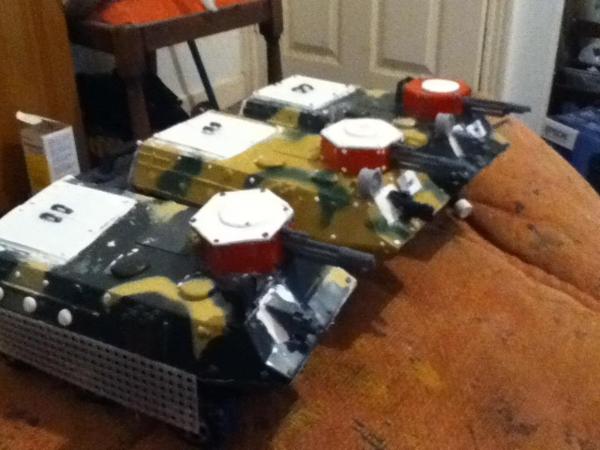 Alas im pretty much stuck, ive ordered some bits from ebay and bits and kits but neither has arrived yet. Im waiting to see what a hull mounted gun will look like on them before deciding whether to use them or not. So far they just have a turret mounted multilaser and firing ports. If I decide against them I may just reduce the points cost a little due to the lower fire power.