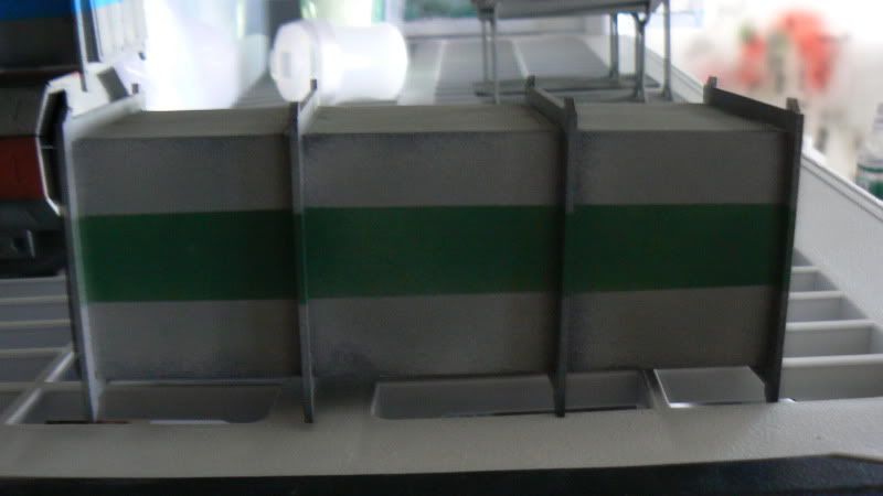 All the rectangular buildings are now striped, as are the "shipping" containers