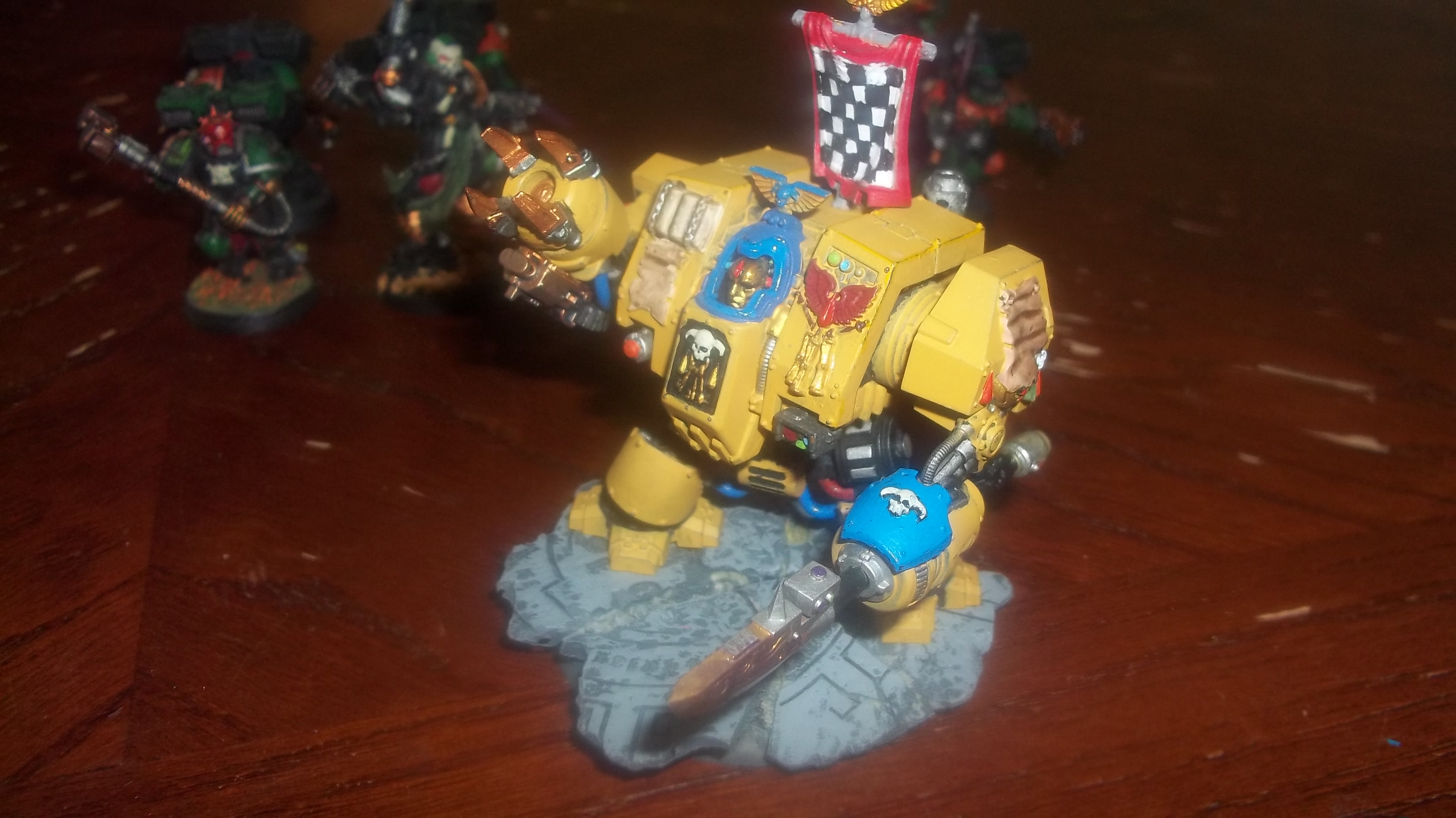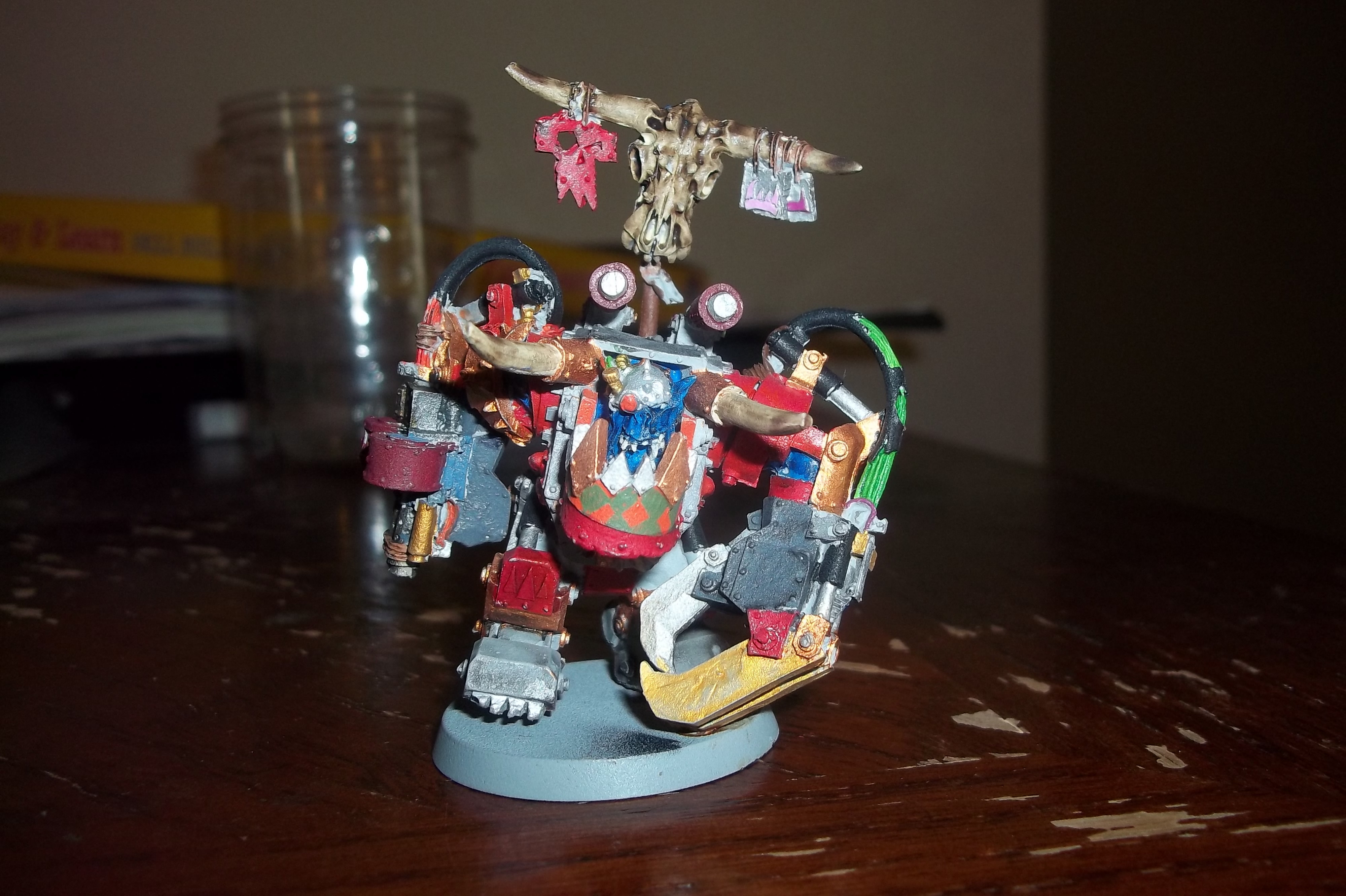 If you came here today to look at more Orky goodness, well, it was put on hold for a week. Have a tournament this week, battle of the dreadnaughts. So, not alot of new work on Orks, plus, the daughter has been busy with school work. However, I will share the pics of the dreadnaught.