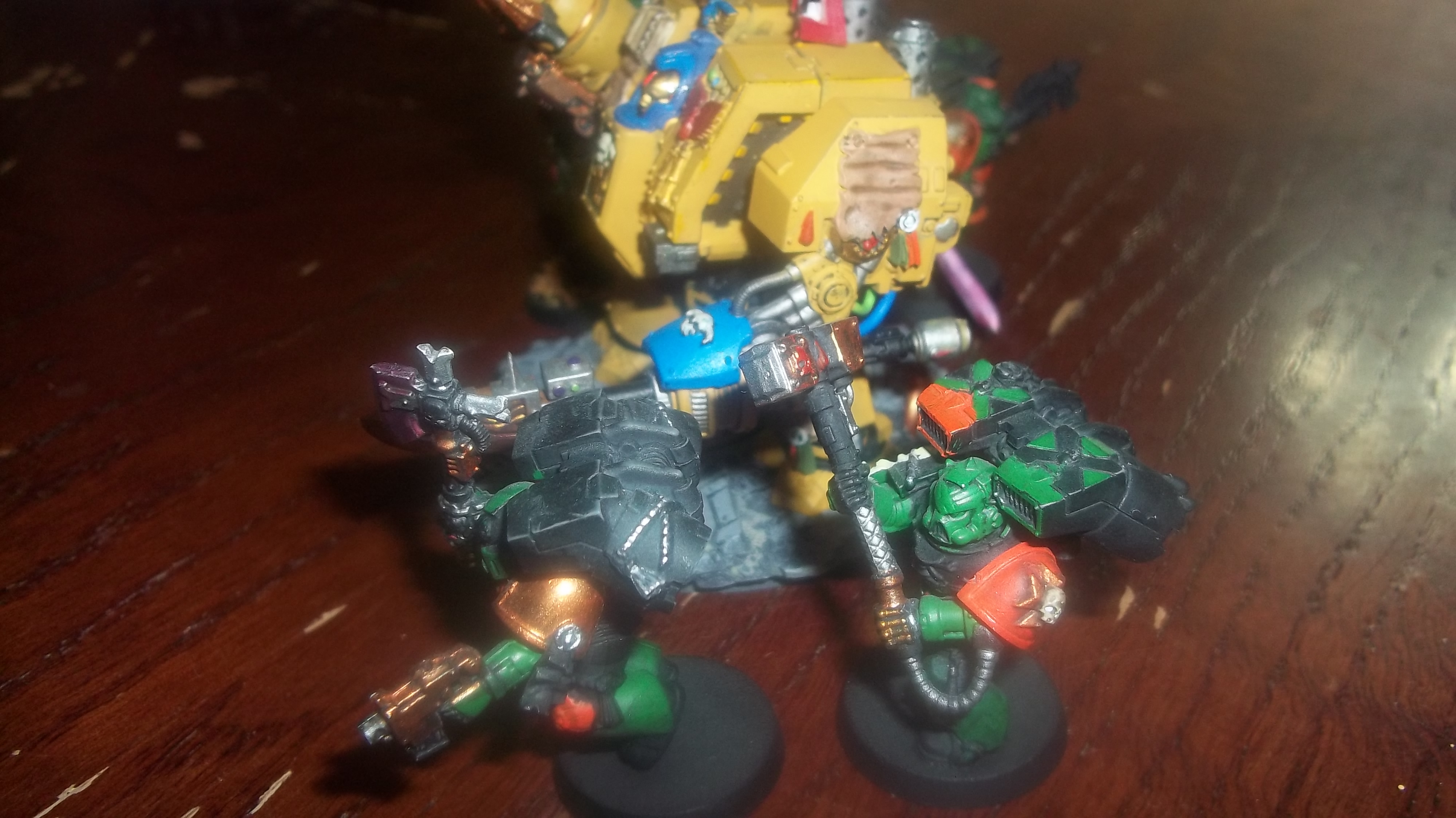 Back again after a small break. Okay, really not. Had a busy week, and so did the daughter. The Dreadnought Fight Club event is over, took 2nd with that Furioso Librarian Dread. Took out two Bjorn the fell hand and one IronClad. Too bad I didn't get enough other points, dreaded Grey Knights and their rifleman dread with psy ammo. Anyway, back to good Ork business.