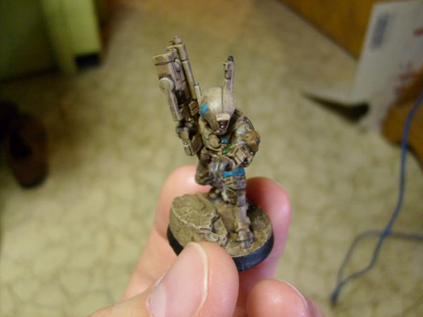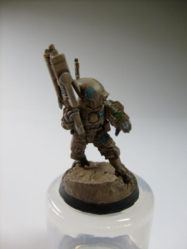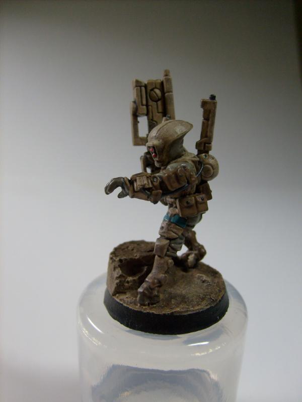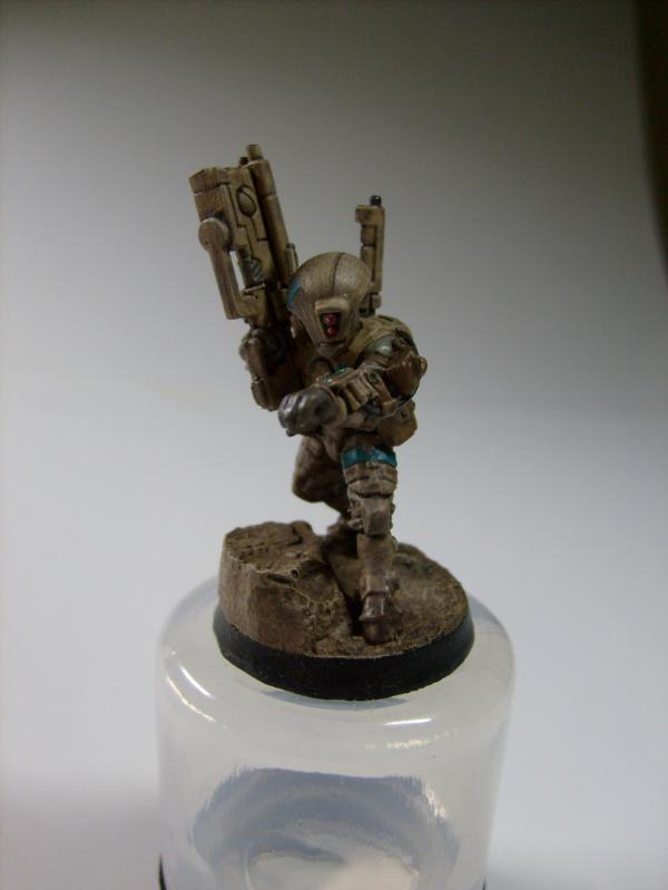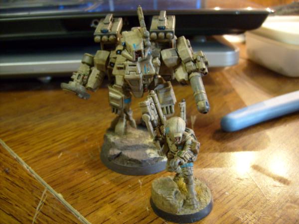 Oh, cool, desert Tau! The dirty tan look gives them somewhat of a feel like the models of Heavy Gear. Good stuff mate.