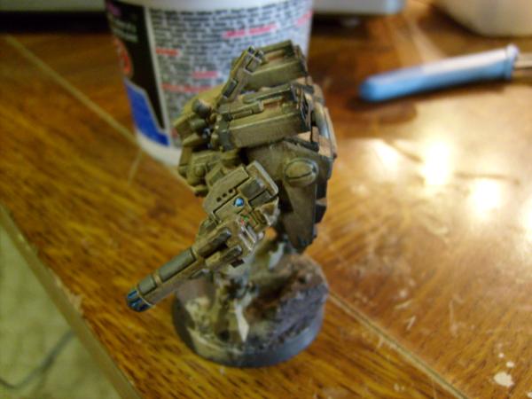 Subject: Desert Tau Army Project (1850 points) Updated: Suicide XV-8 Crisis Battlesuit 80% Paint Completed