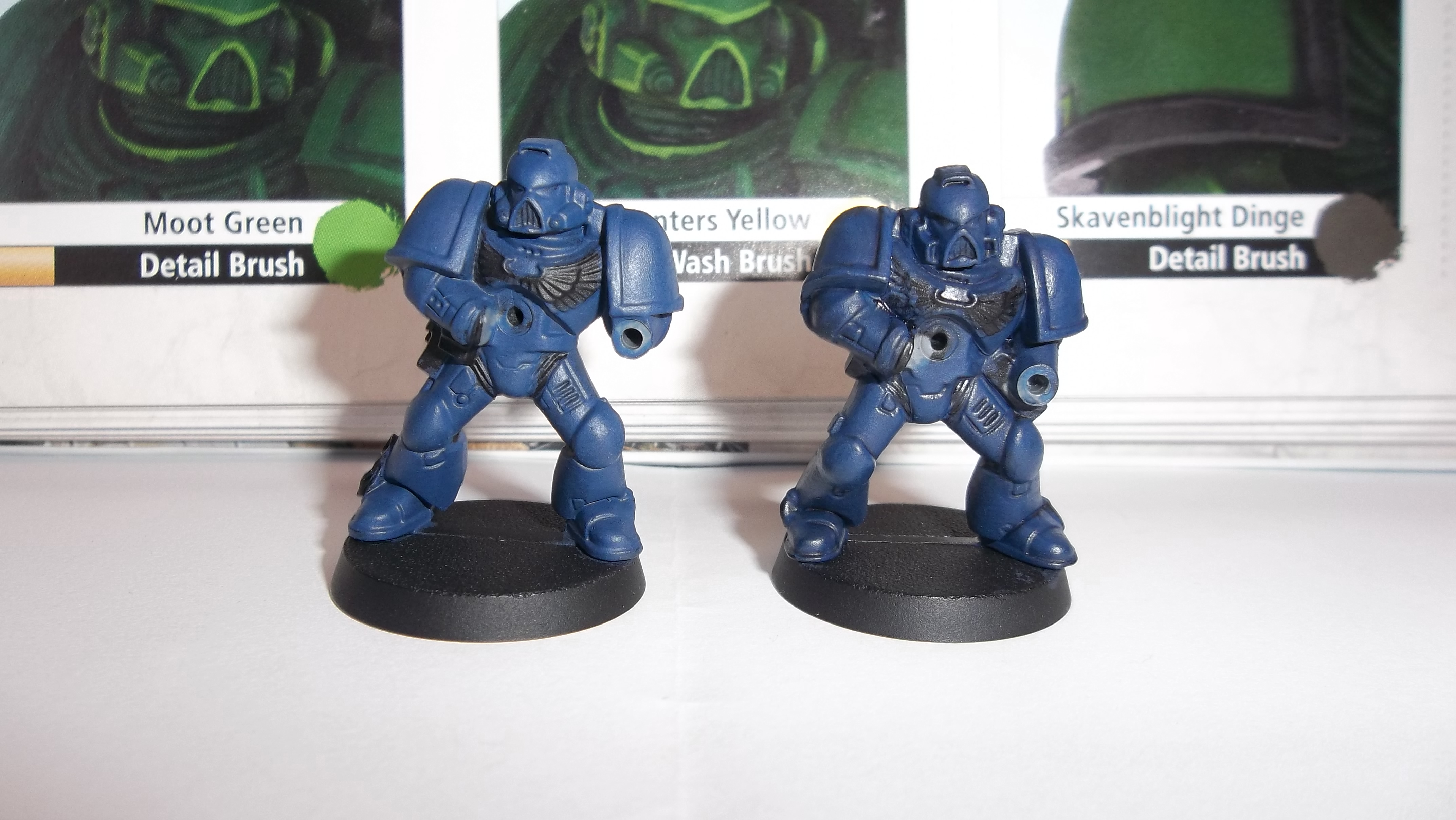 They were both based with Kantor Blue, the one on the right had two thinned coats of Drakenhof Nightshade. The Washed mini looks a lot darker in person.