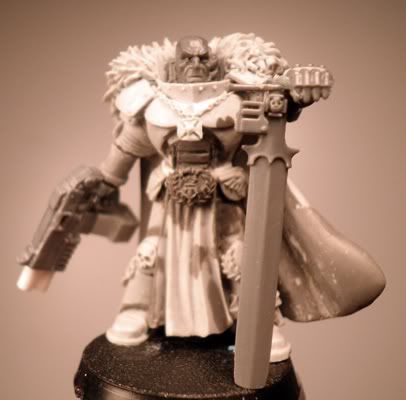 More recently, a librarian conversion challenge on B&C got me motivated to finish up a figure I started working on in October of '11 for my then Imperial Fists army. Here's the rough mock up: