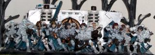 Squad Secondus: Superior with bolter, two flamers, seven sisters with bolters. Transport: Velox, rhino.