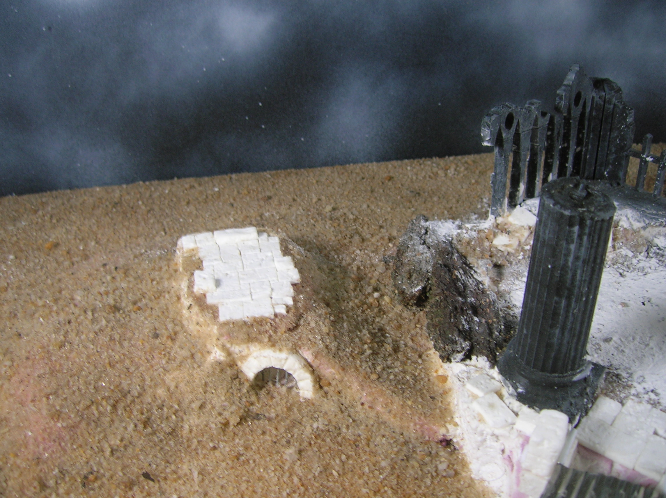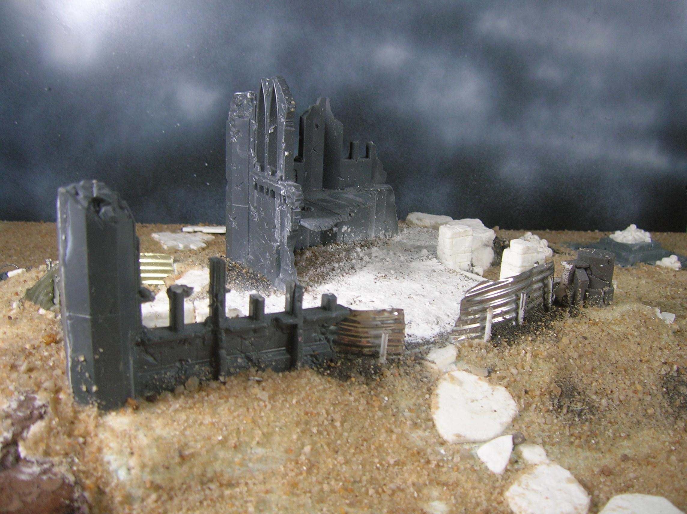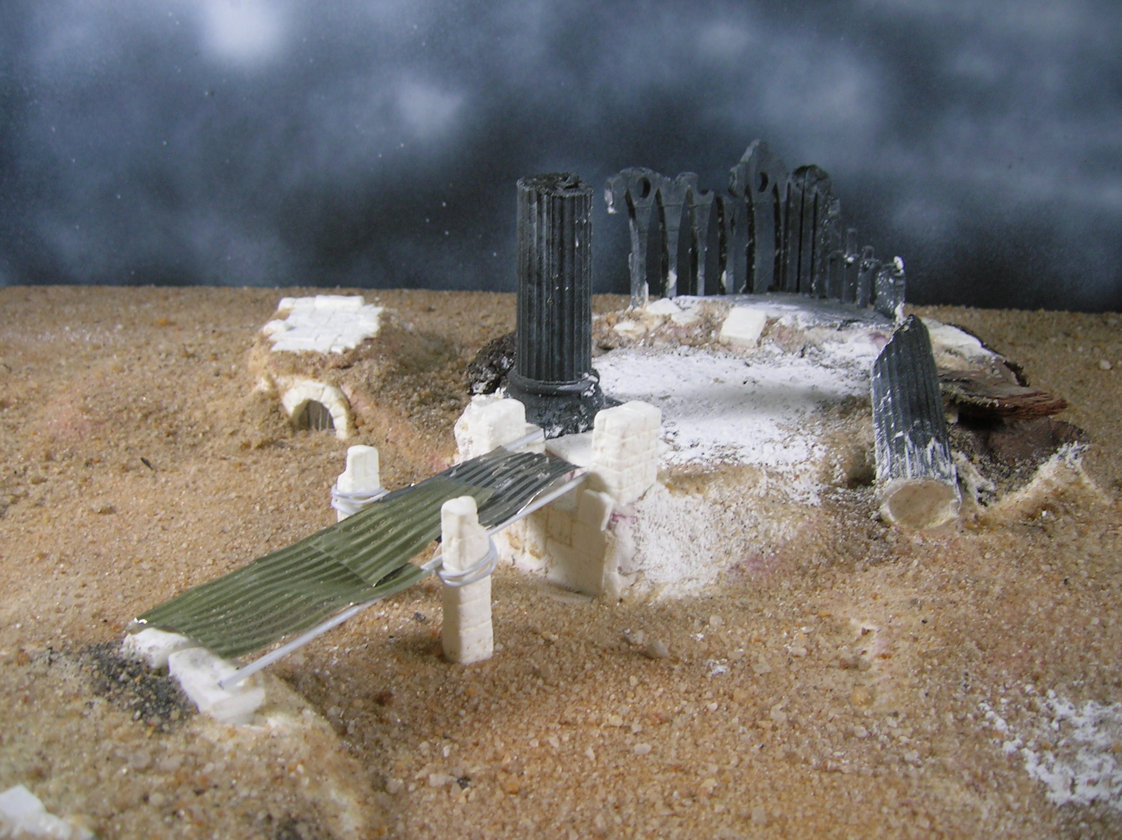 Im going for a rather bleak look so I'm going to leave out any vegetation. I have two tubs of grass that I was using for another project but it looks like they are going to be used in Mini Hammer 2.0. The sand will be undercoated black and drybrushed several different shades of dark grey and brown. The bridge and the stepping stones are going to cross a small pond of green/blue water that will be topped with resin for water effects. Can't wait to start painting tomorrow!