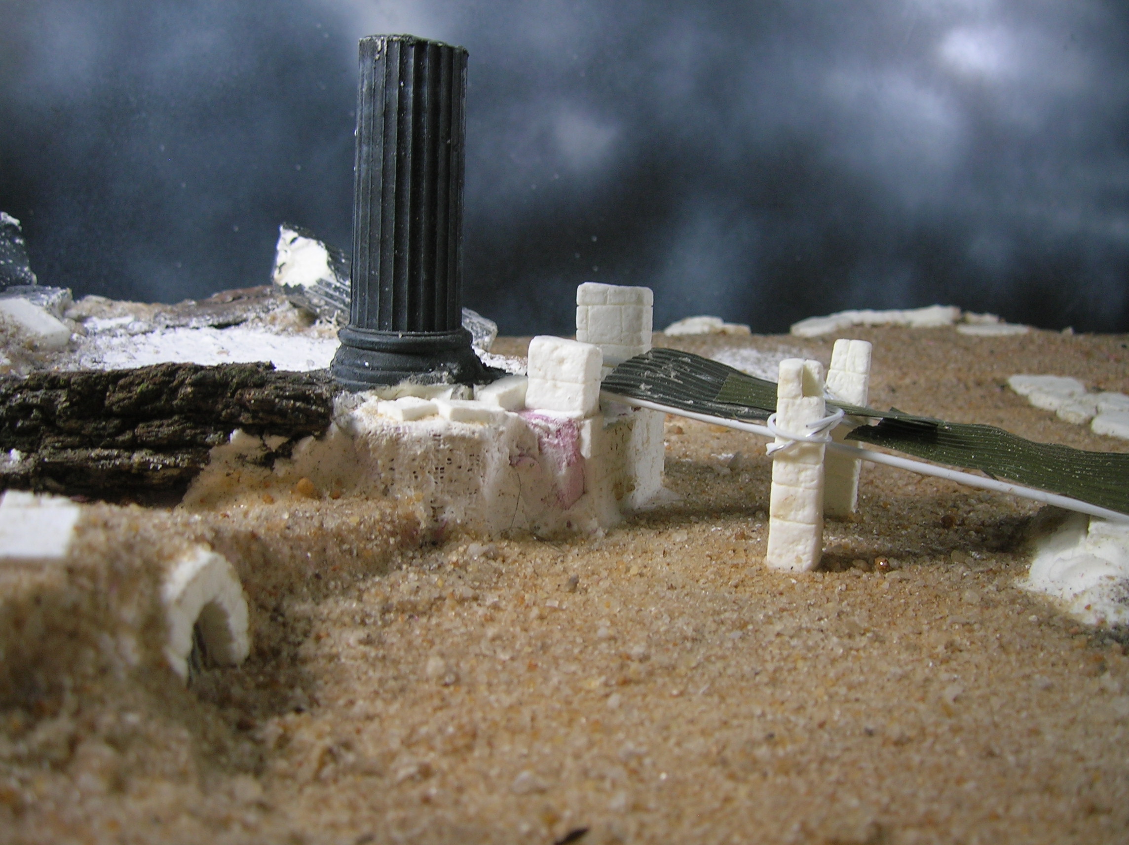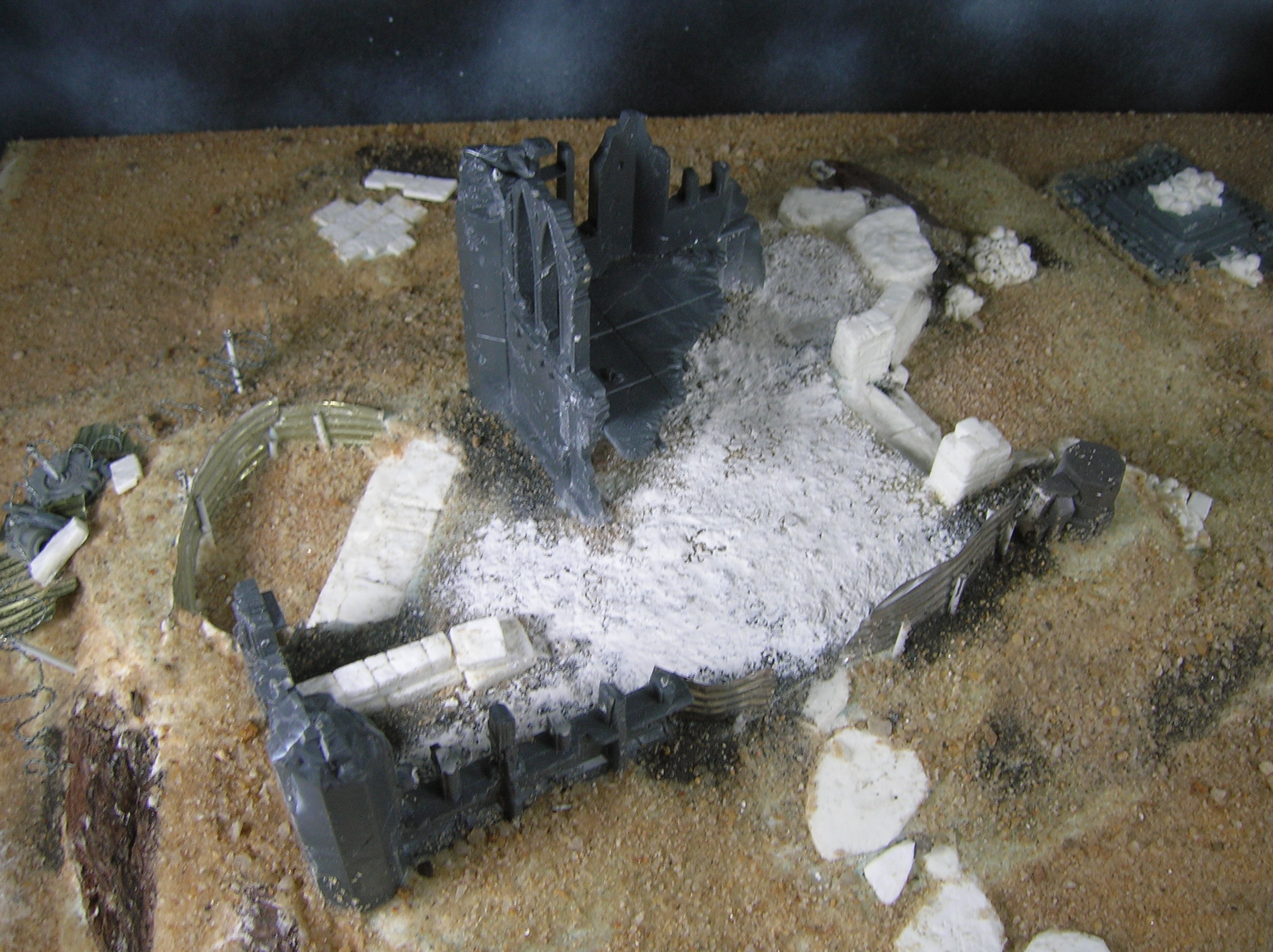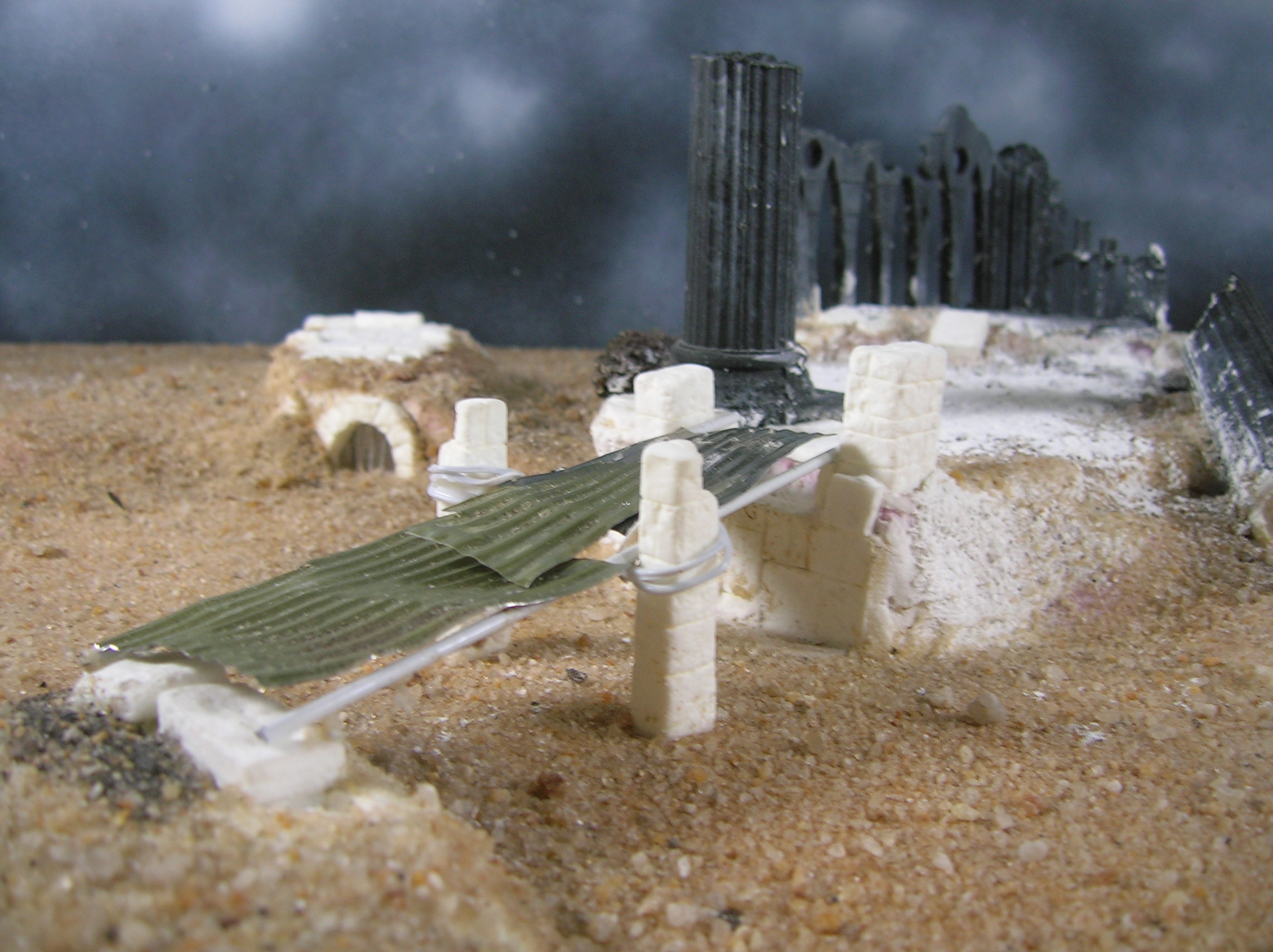 The terrain is coming together nicely. I'm really diggin' the little details. Good mix of bits and scratch builds. Will you be adding tufts of grass after you've painted or will the ground be more rocky than grassy?