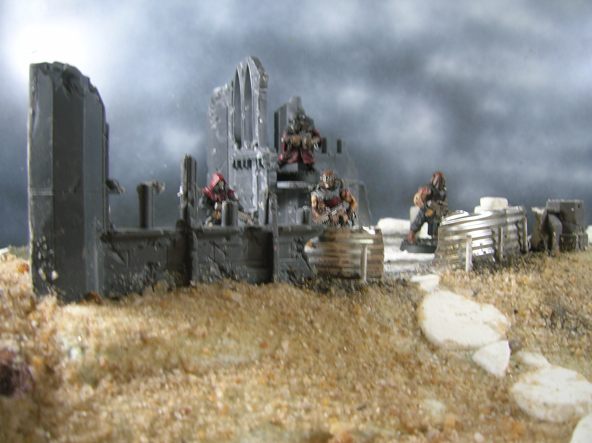 I really enjoy the dynamic you have here, of Imperial Guardsmen facing off against Cultists in a desperate fight for resources on a dead world. I like what you've done for the Cultist side of things; the character really comes out on those models when it such a small unit size. The only thing I can't say I agree with is the lack of other races. I read what you want to do with Tau and Dark Eldar, but I think some really fun ideas can be spun with a little bit of playtesting. I could see some interesting scenarios coming out of this.