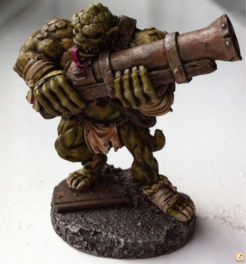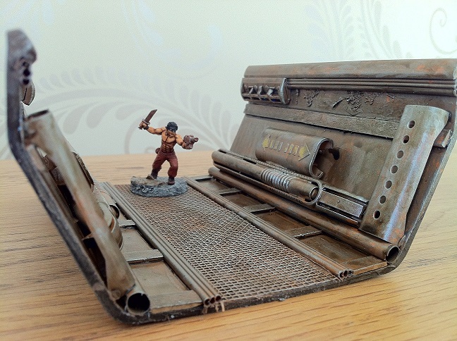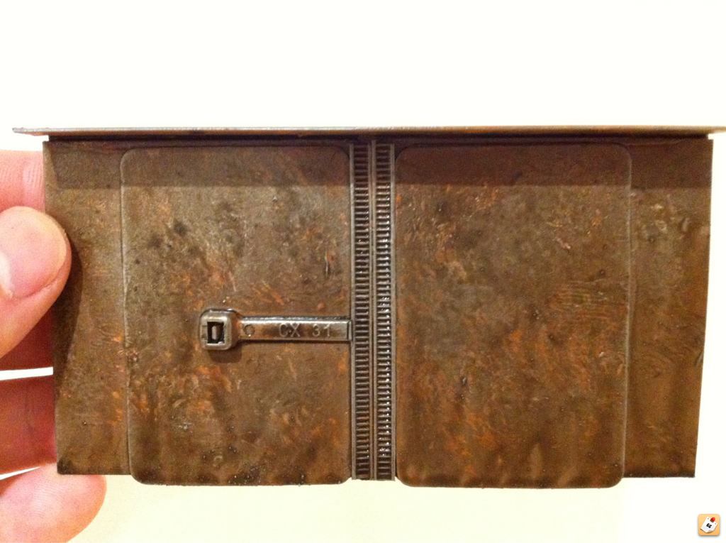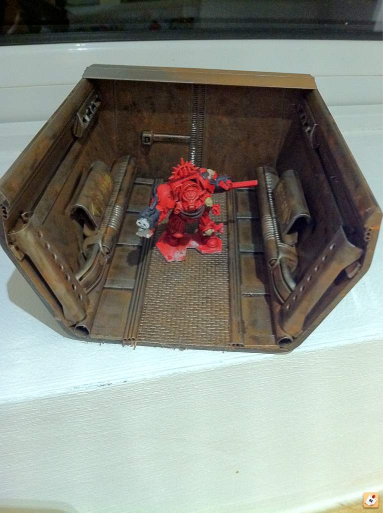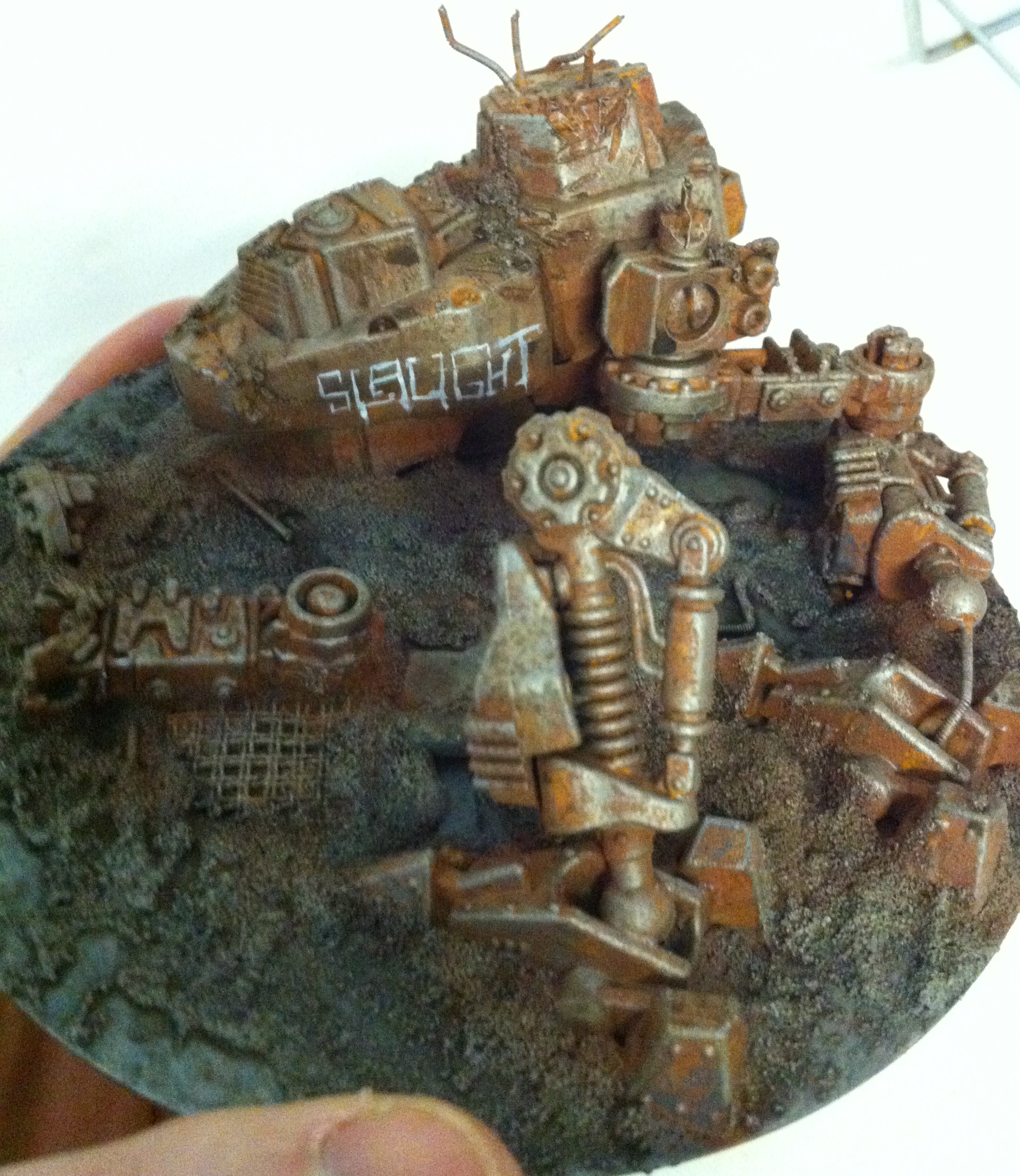 Fango: rust recipe is brown undercoat, orange stipple, then silver drybrush. That's it! Oh I might put some earth shade on it after but not usually