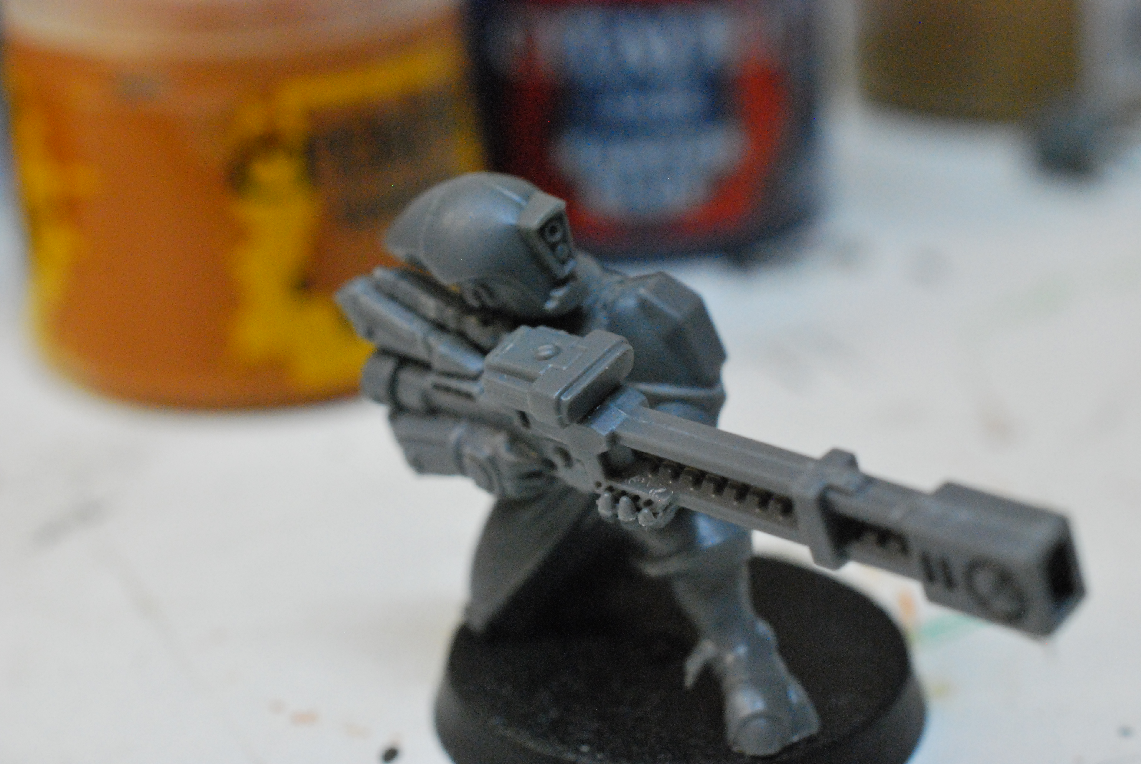 I've recently noticed that the Tau railgun doesn't have a scope on it. Now the logical explanation is probably that the helmet does all the work. I didn't like that, so I added something to the rifle to modify the user's vision. I thought about making it hardwired but changed my mind.