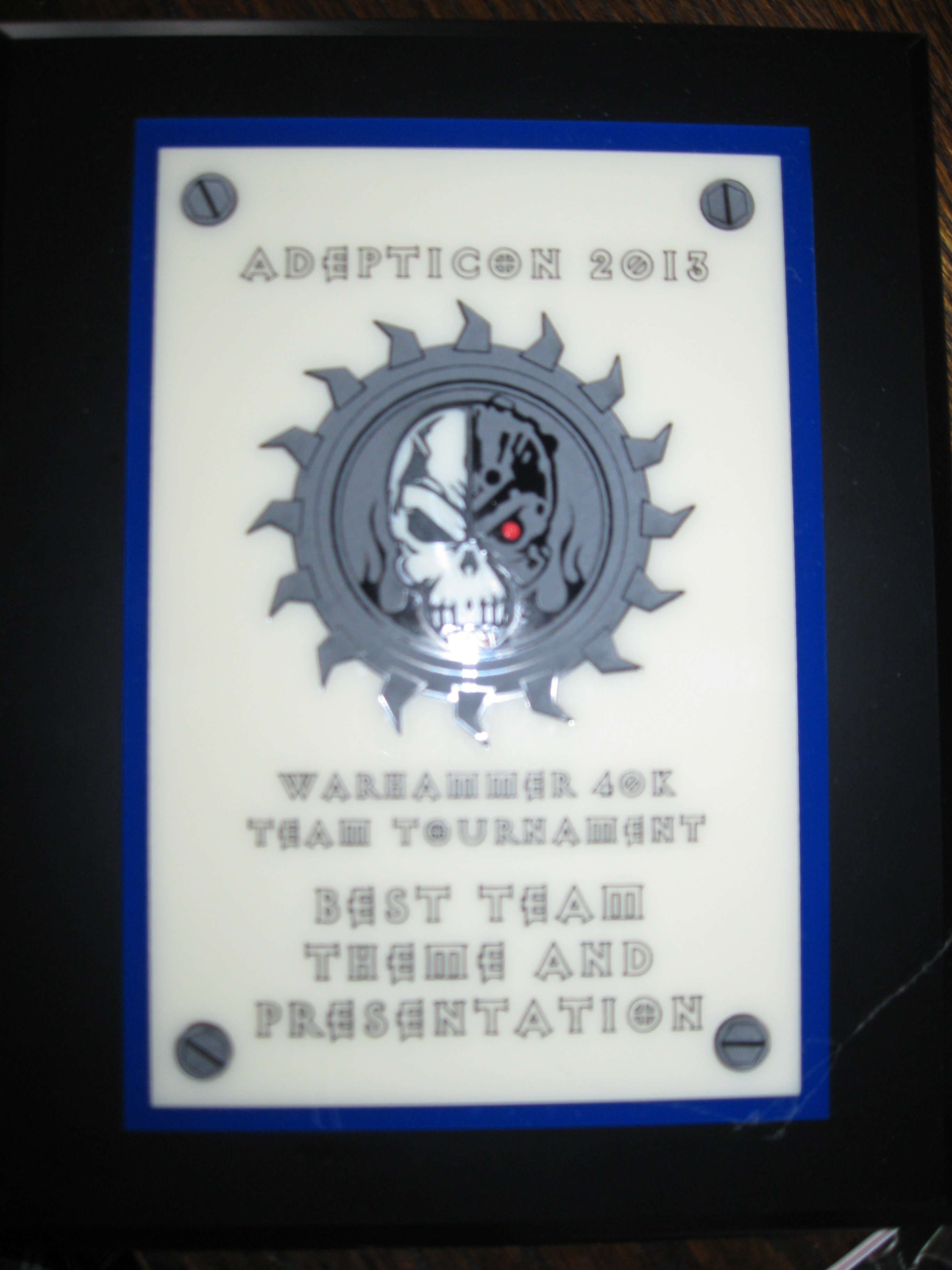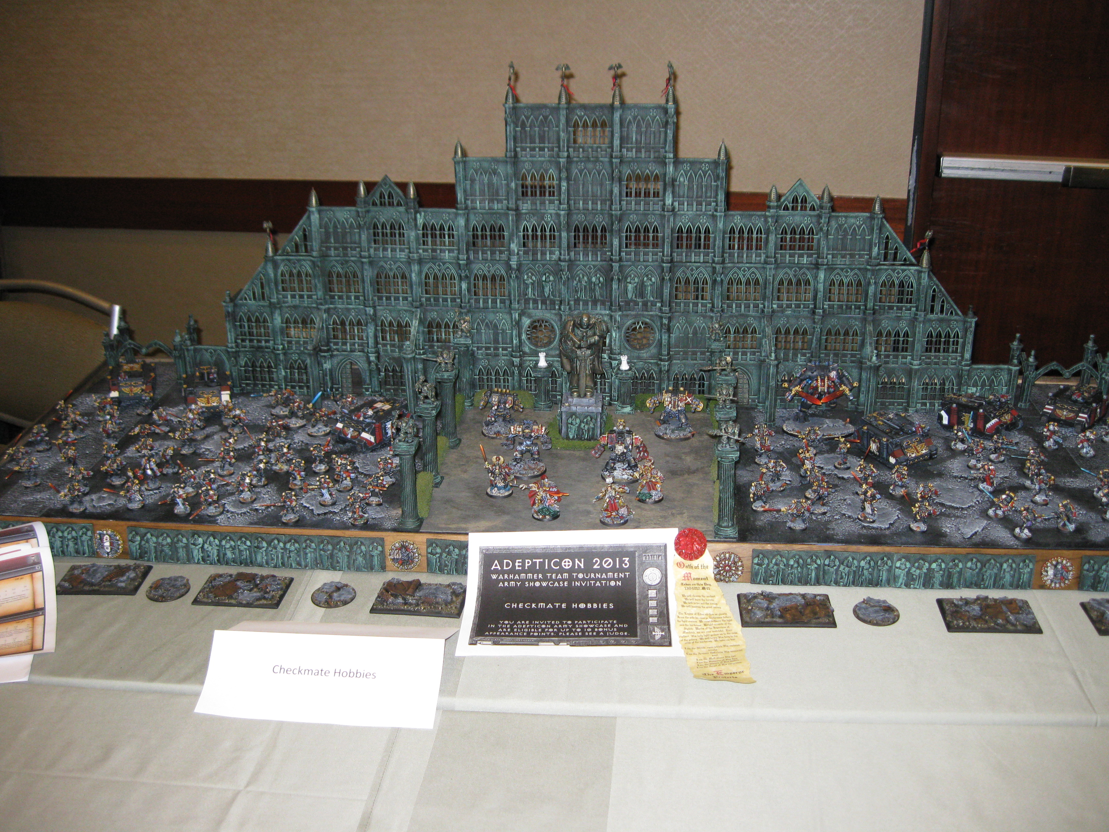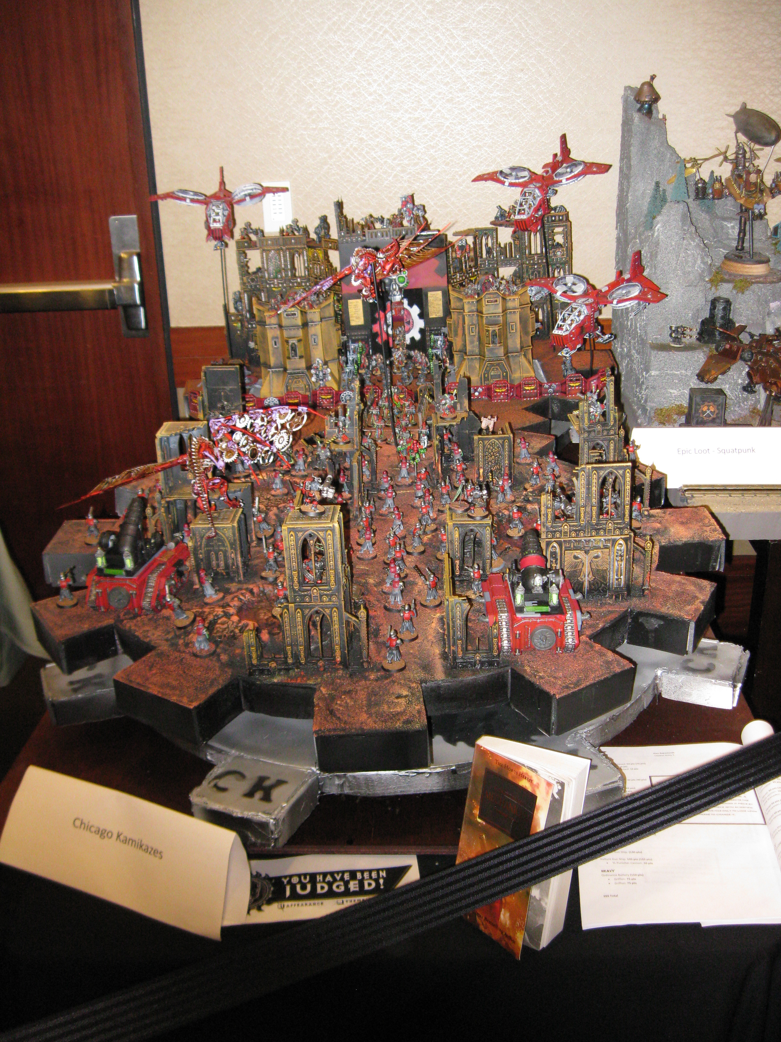 When we arrived at Adepticon and set up, there was a ton of positive feedback. The judging for theme and apperance went well and we got ready to play some games. During the tournament they announced that they would invite the top 10 teams for theme and apperance to set up after the games were done for a showcase, and we were one of the teams. If you did set up for the showcase, you would be judged by 10 celebrities of the 40K community, and could earn up to ten more points. Here are some of the other armies in the showcase.