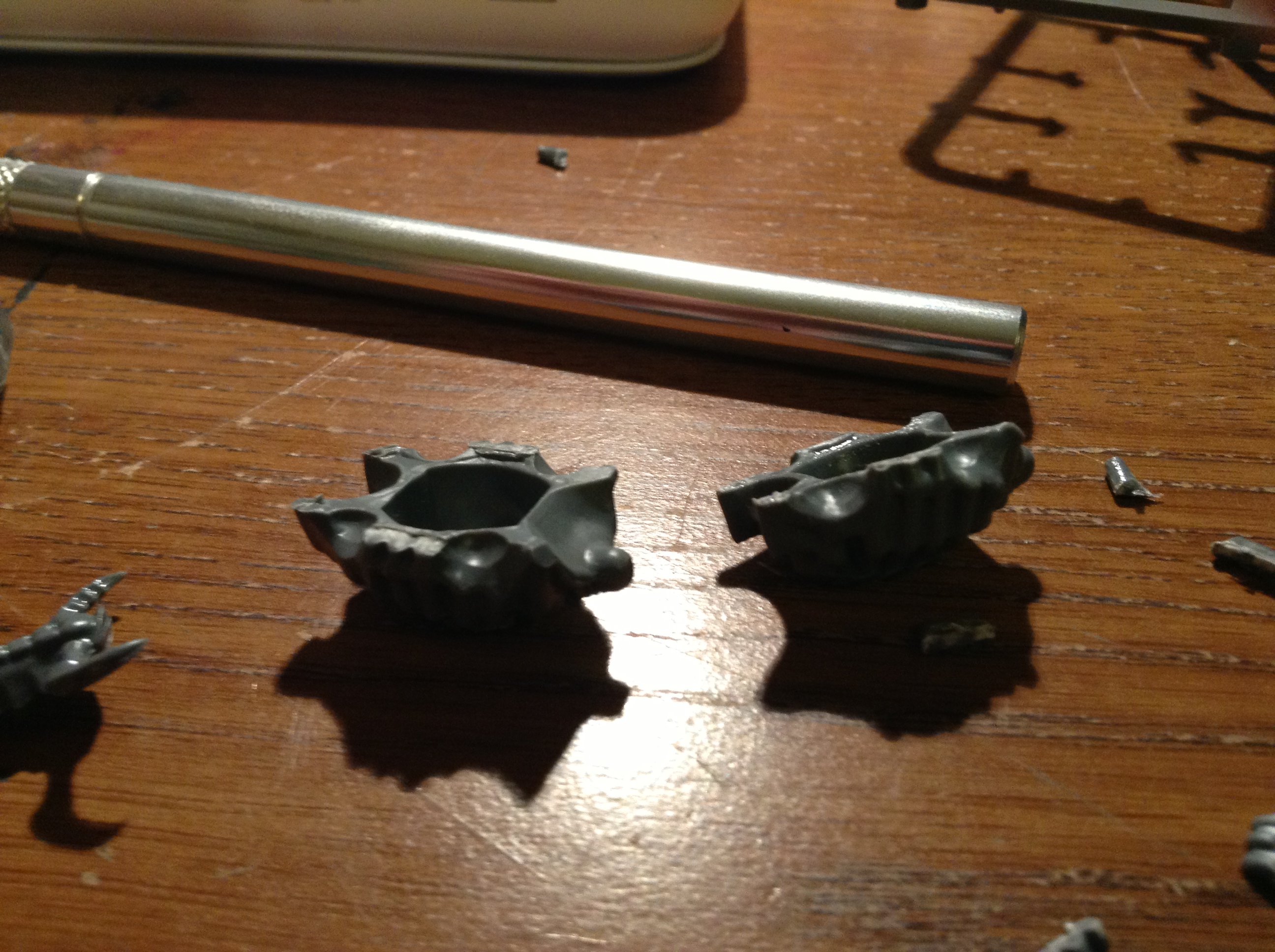 5). Take the tail section from the Hive Tyrants grounded legs, and cut it off before it starts to curl and get too thick, we'll use green stuff to attach it to the lower body of the Ravener, the longer tail set's it off nicer.