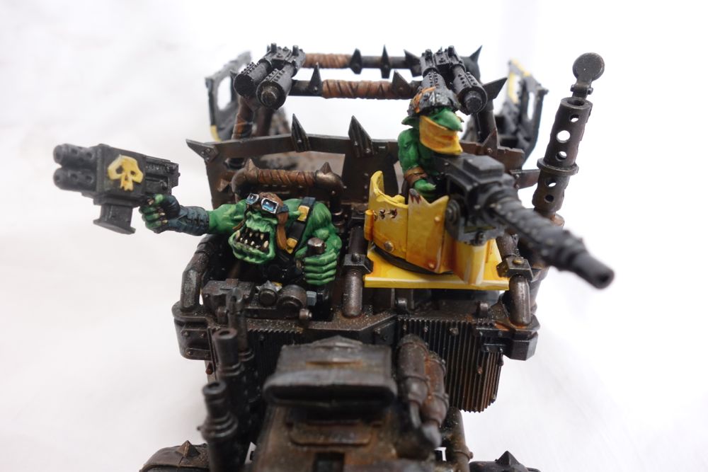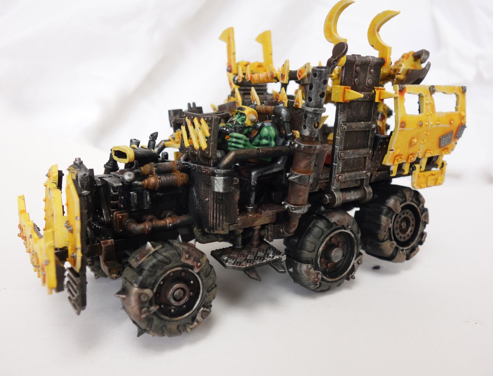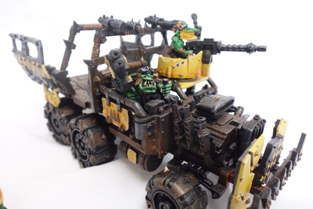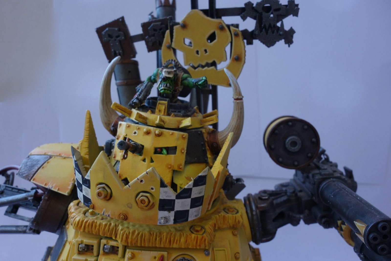 Battlewagon was, like its two companions, painted quickly for the Apocalypse game, same method as Stompa, yellow is Humbrol with the two Citadel washes and edge highlights.