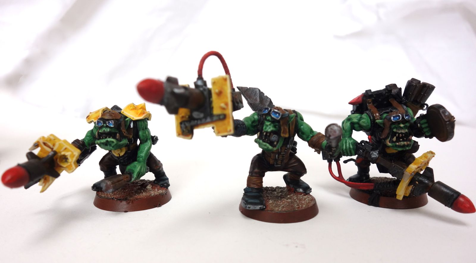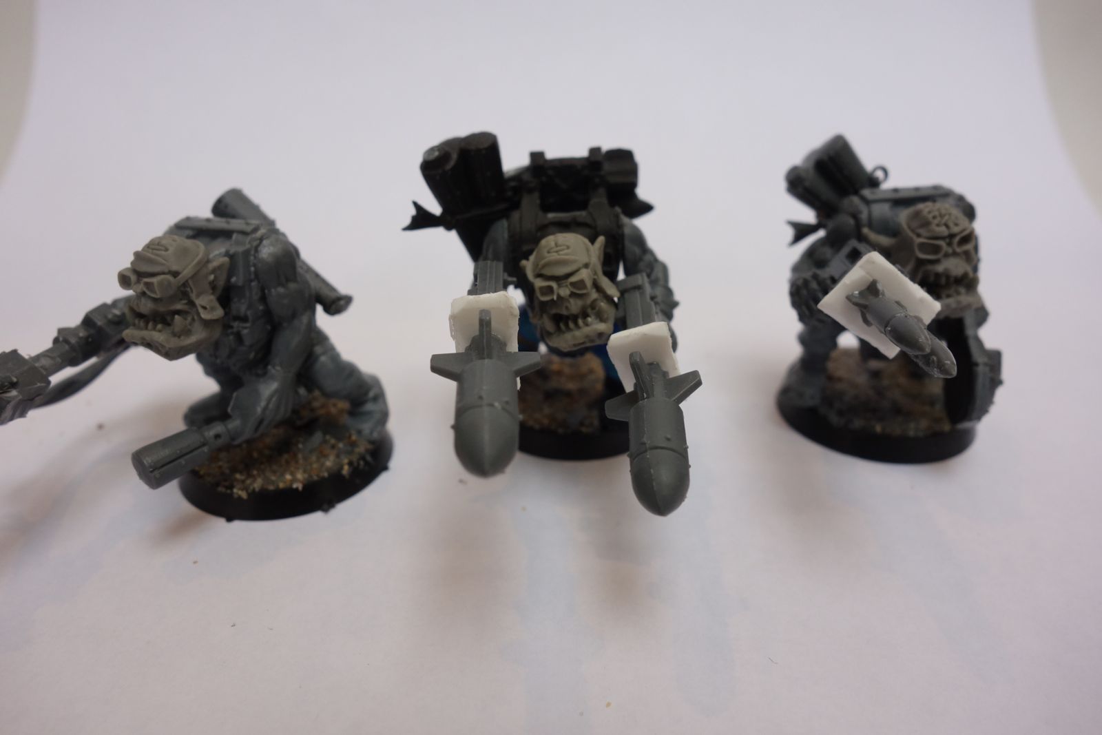 Tankbustas are regular boyz parts, using up loads of rokkits that I've swapped on here. Plus Spellcrow heads to give em a bit of oomph. The crew for their truck, when it's finished, will match .