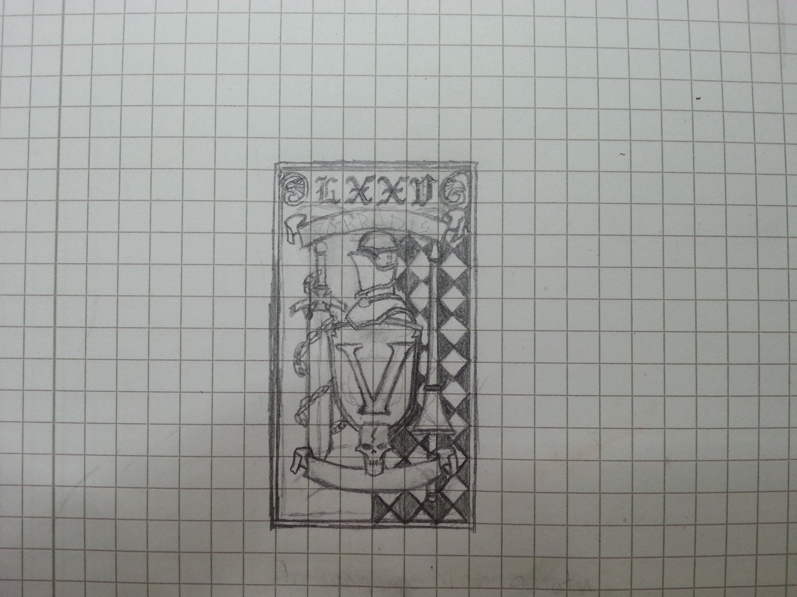 With all this in mind I though to myself "I need a wicked regimental banner". So I've worked something I'm happy with out and even sketched out what I want to paint on it. All I need now is some to translate their motto to latin " In armor of blood red honor" unfortuantly thats proving the hardest part! If you folks have and suggestion or tips just lemme know, all feedback and critques are appreciated!