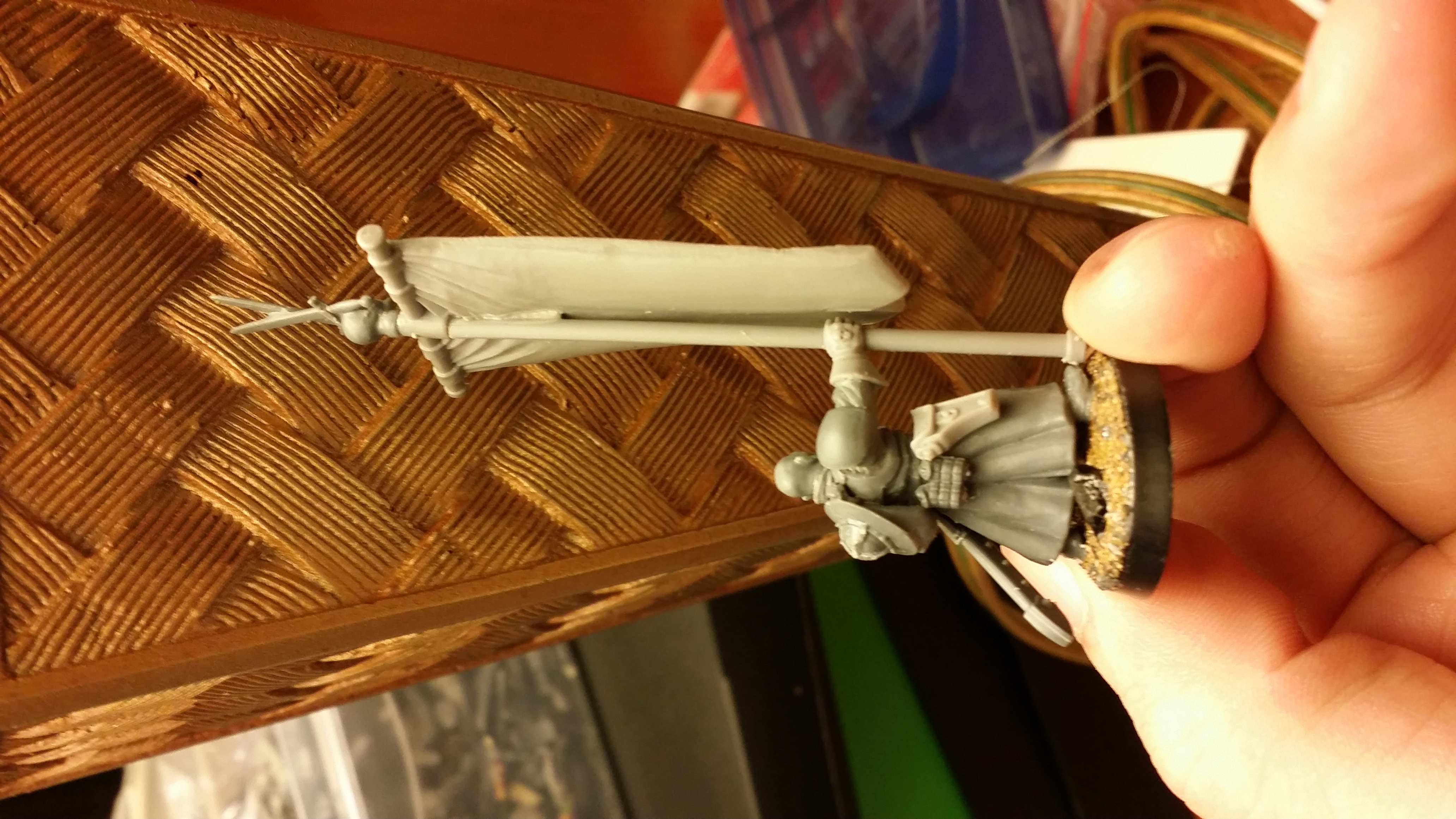 Secondly, finished the bearer for the regimental standard. I'm working on armoring him up abit to represent carapace but the GS is tricky. Really difficult to get those nice squared off edges, and sides. I think I've started over five times heh, I'll get it though! Once I figure out the trick to GS I want to do some filigree on all of the armor of my command squad.