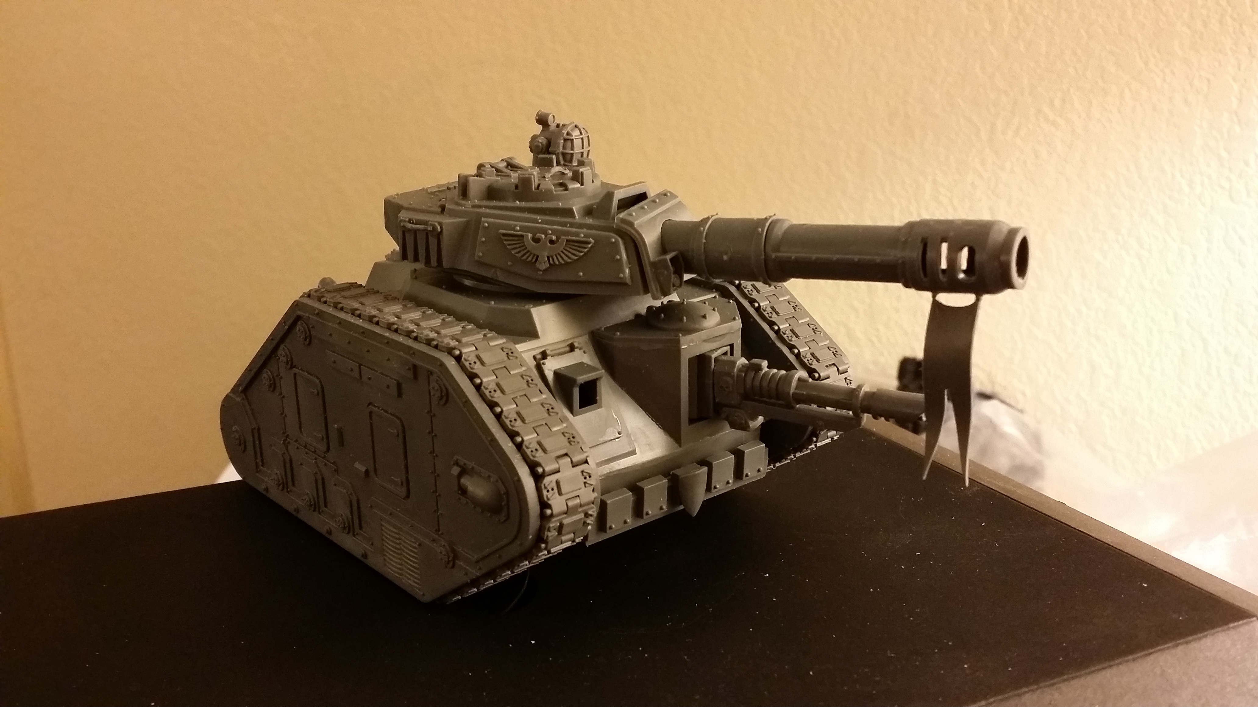 I like the leman russ, really I do but it's just too bare for my tastes. I've decided to gussy it up a bit, with handholds for the crew, some external systems, a little extra plating on the front with a heraldic shield and a banner hanging from the vanquisher cannon. Also, I hate, hate, HATE, the dinky plug and play lascannon that comes with the kit so I took a spare HWT one and shaved down the end, looks sooo much better to me.