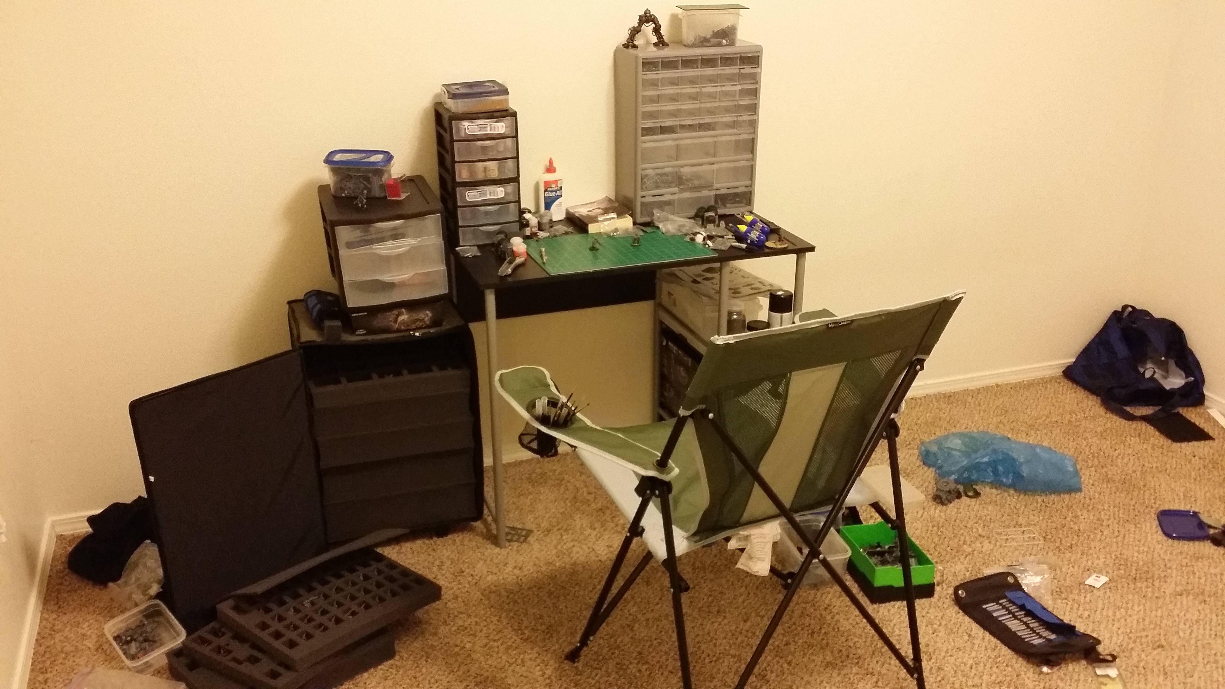Woohoo! The wife and myself finally moved into our new apartment! Best part about it? We have three bedrooms so that means the Vorradis 75th just got a new HQ aka MANCAVE! (Though when the rest of our stuff shows up the missus will have a place for her DE).To celebrate I put together the first of my Vets.