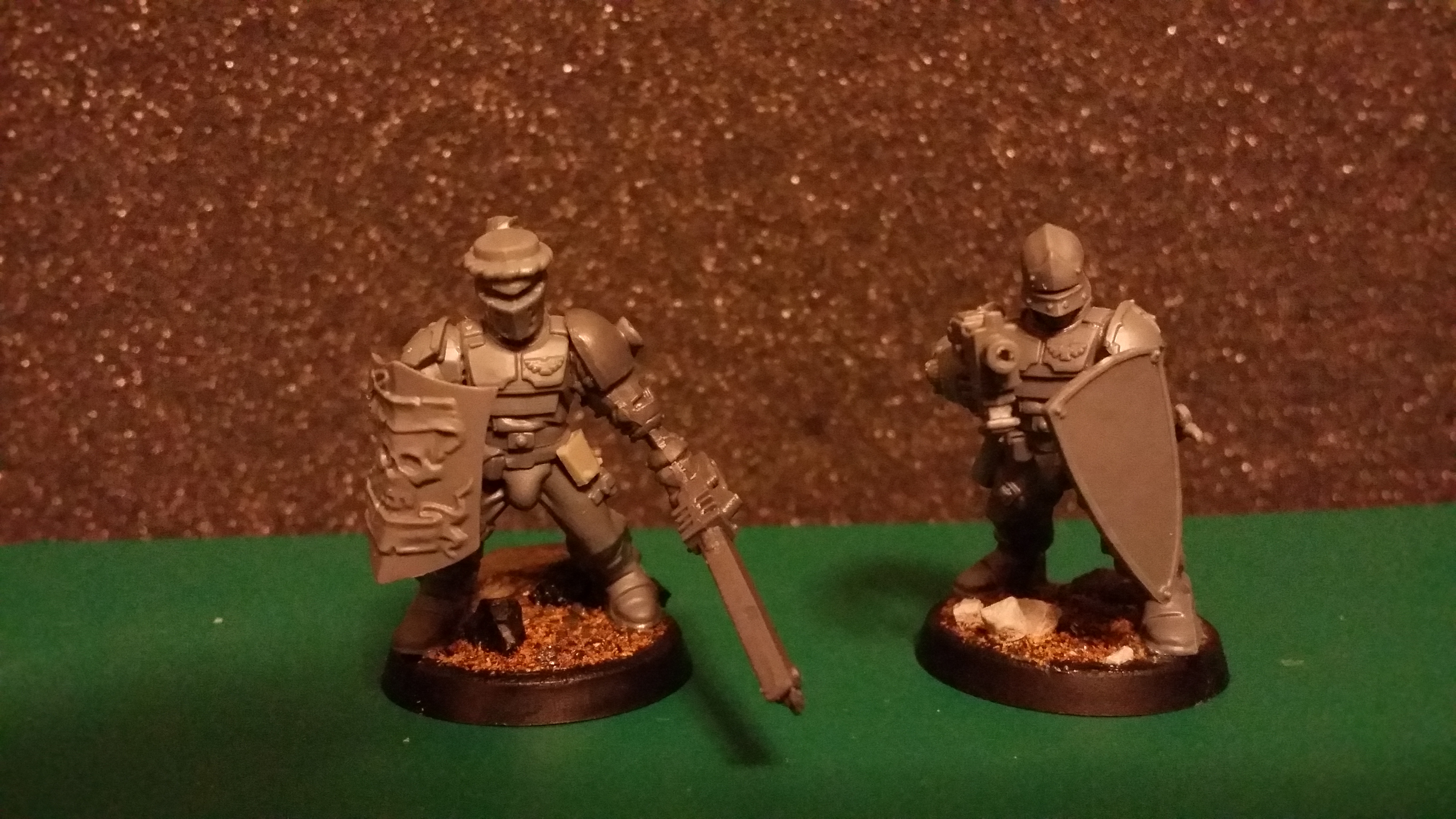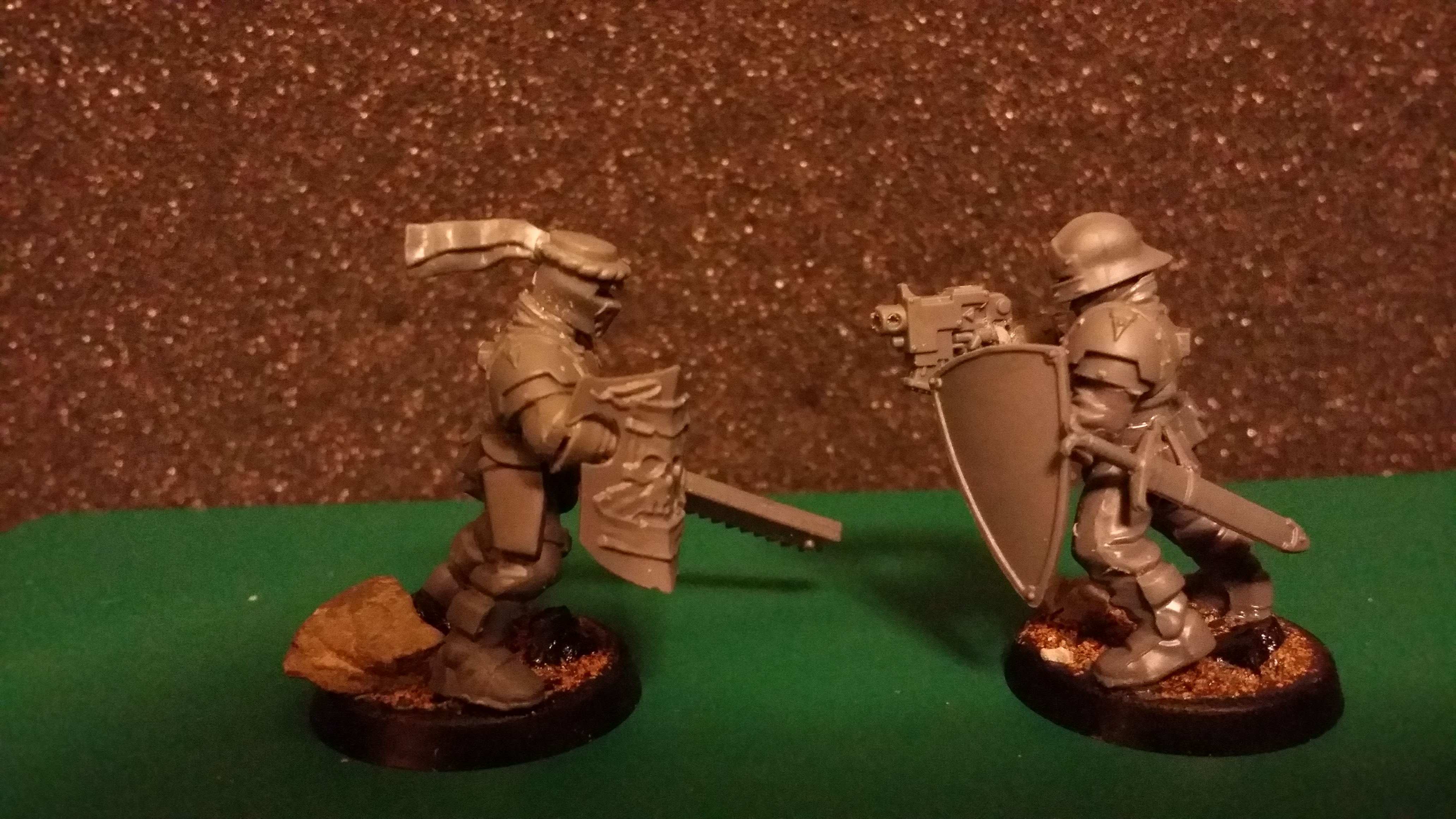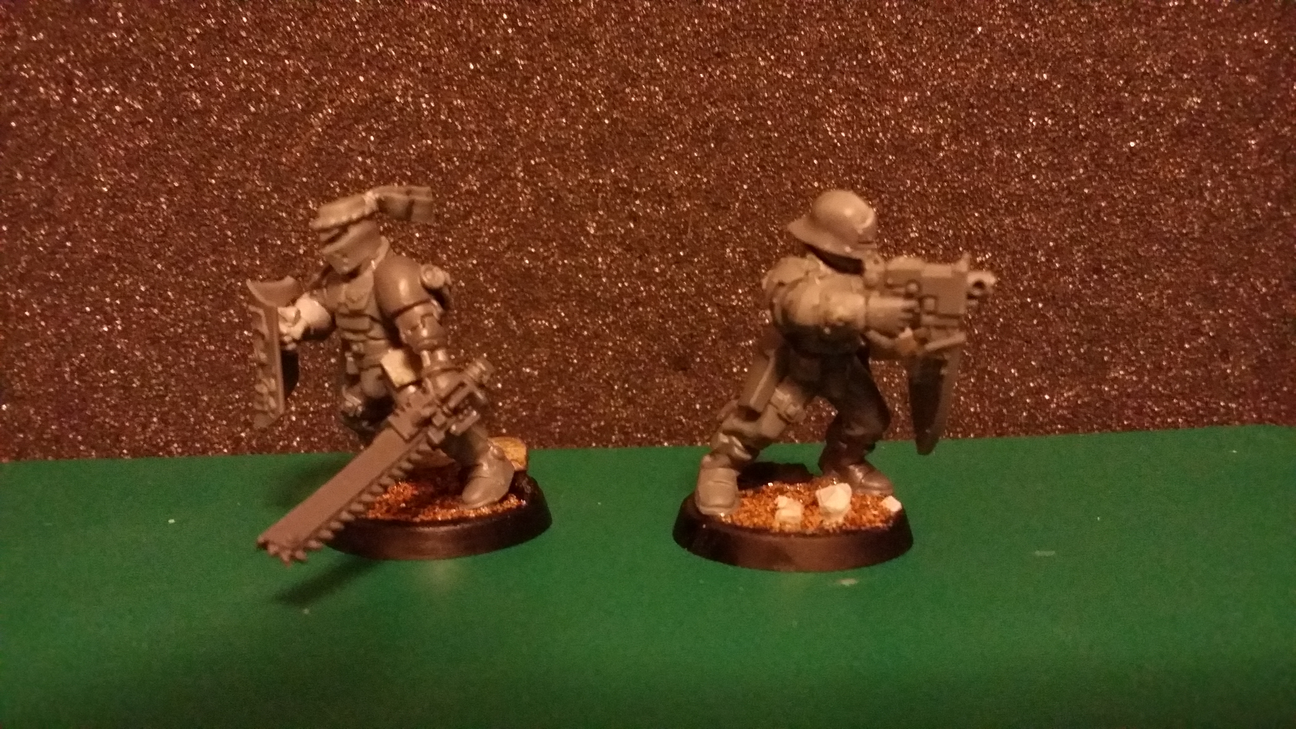 The Genswick are actually where I got the idea from, but didnt know their name at that time.I really wanted a more heavily armored look across my army (even if its still the equivalent of cardboard  ) and I think it came out best mixing the bret head and the cadian torso and arms for that medieval meets future that I want the 75th to embody.
