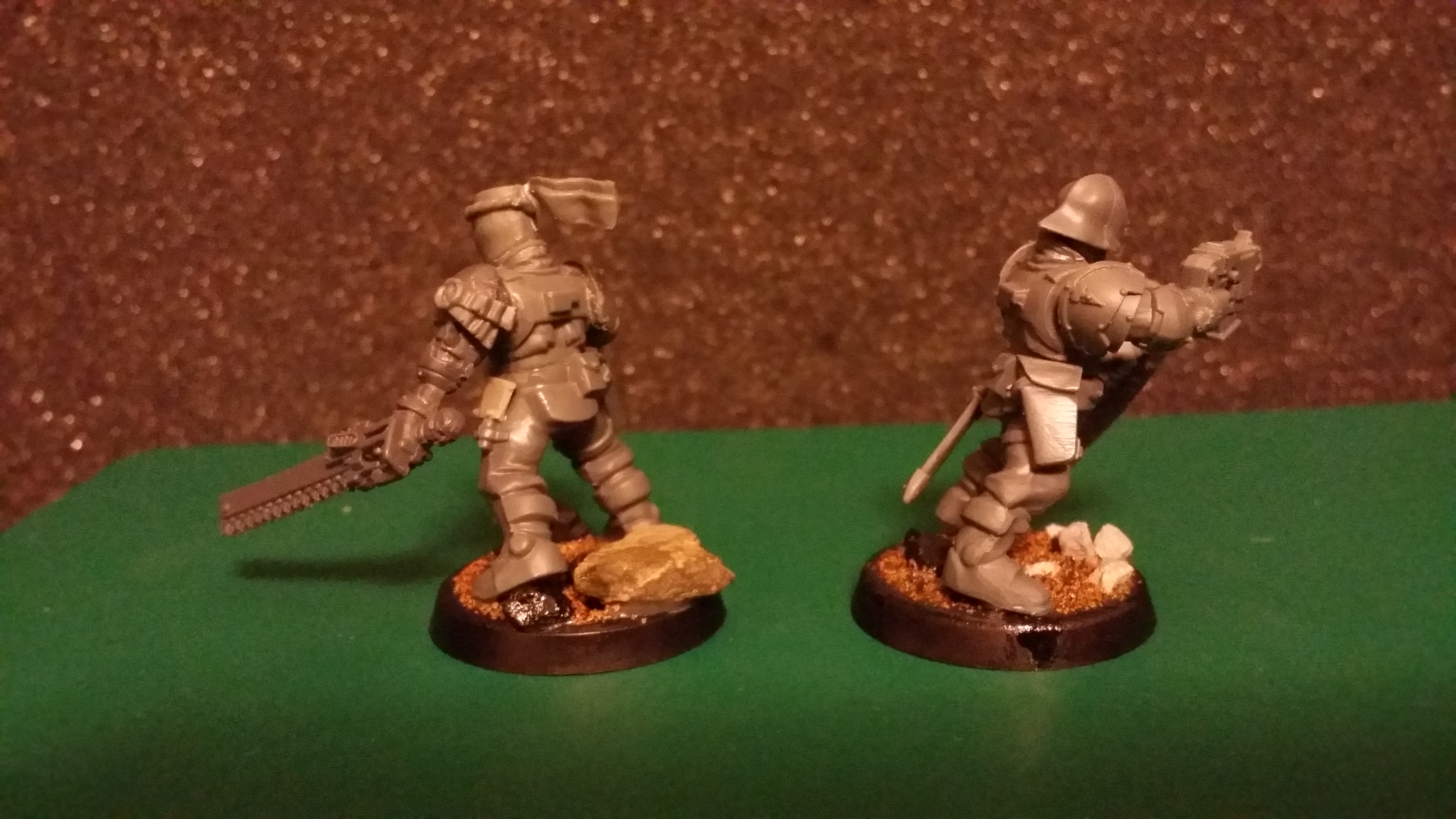 Alrighty, so got abit more done as I had a 24 hour shift recently. First off I finished kitbashing a whole squad, complete with unique sergeant (I plan for all of them to be different) and putting the terrain on the bases for them, and primed the whole lot of them.