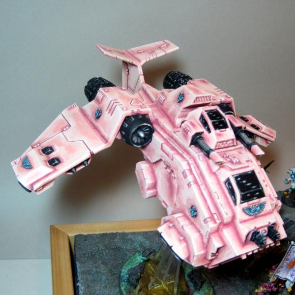 I have a Stormraven which I use in another army but the paint scheme is close enough to use for the Inquisitor Worden and the Knights of the Flaming Cheddar. The only problem is the current base doesn't match so I made a new one.