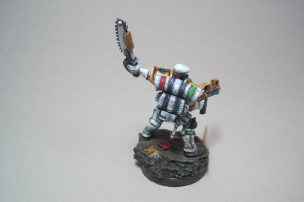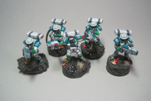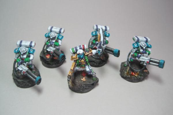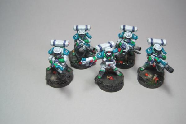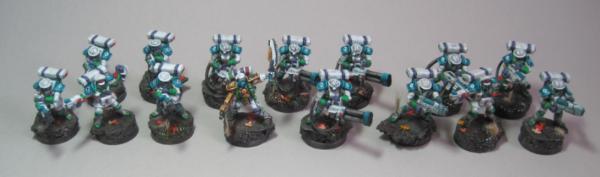 Working on the second Engineer / Demolition Expert. One plasma gunner and one autocannon team are waiting for paint. When those are finished Veteran Squad Bravos will be complete.