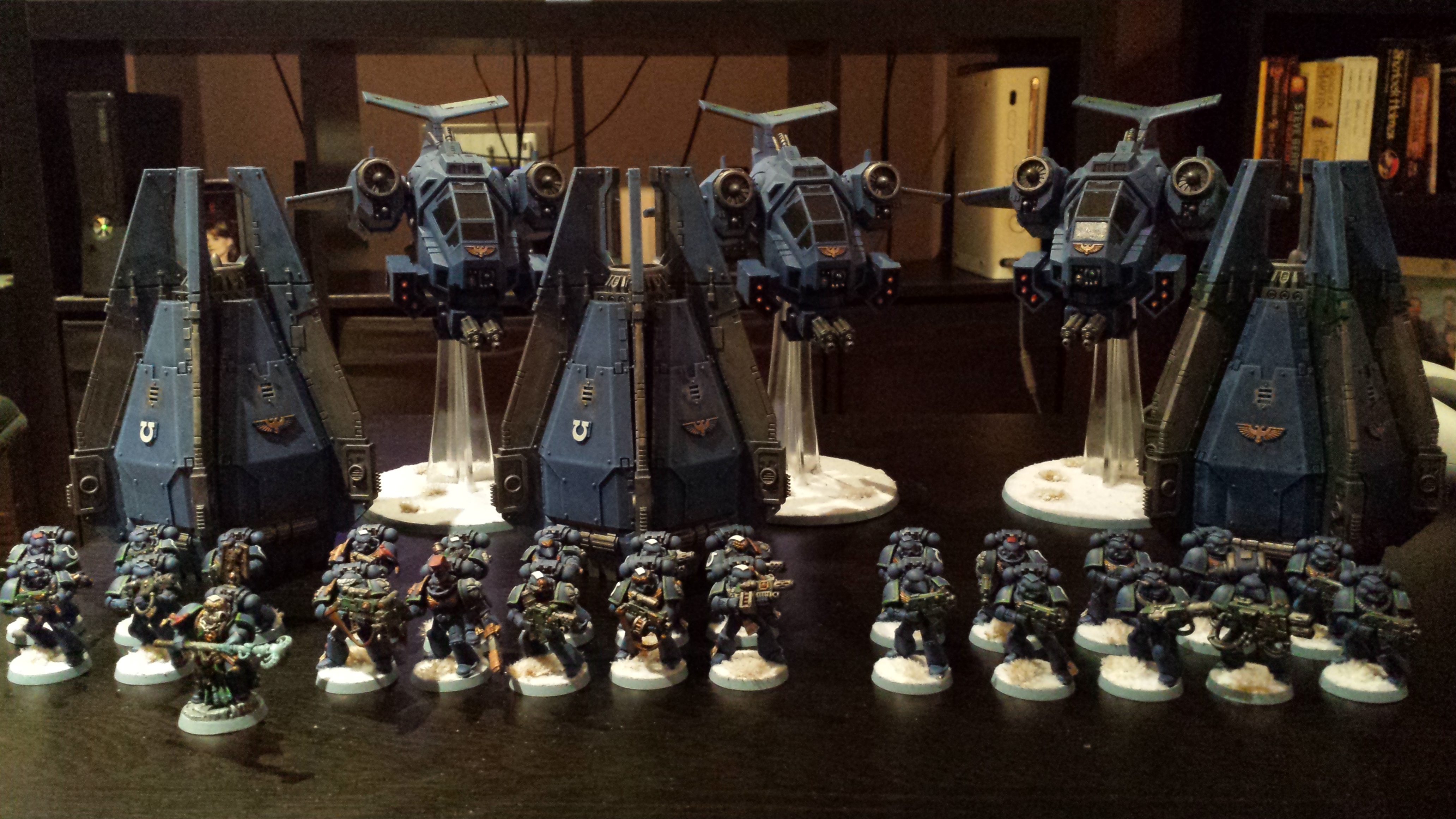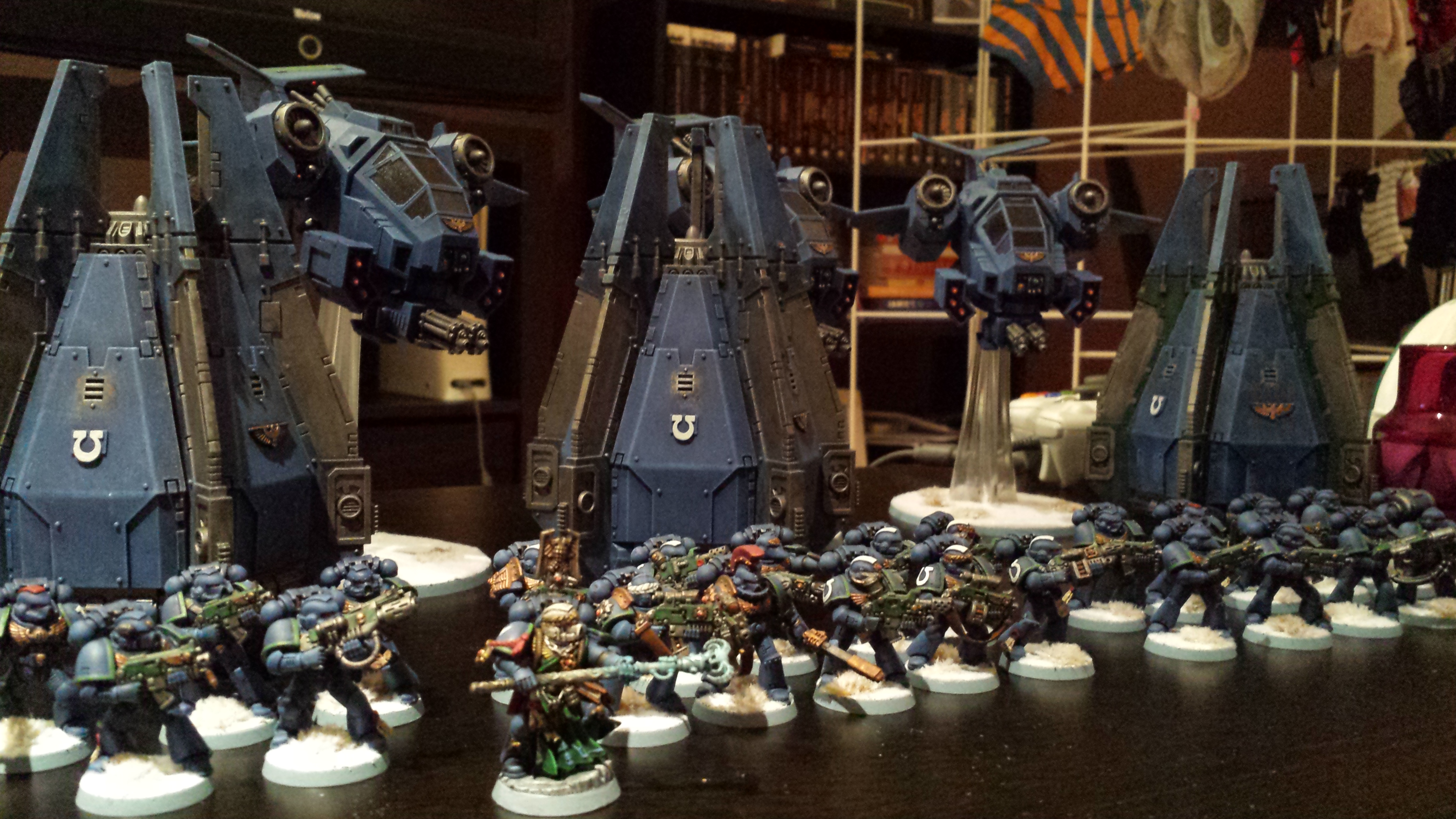 I've done two drop pods, and 15 marines in the form of a tactical squad and a 5 man combat squad.