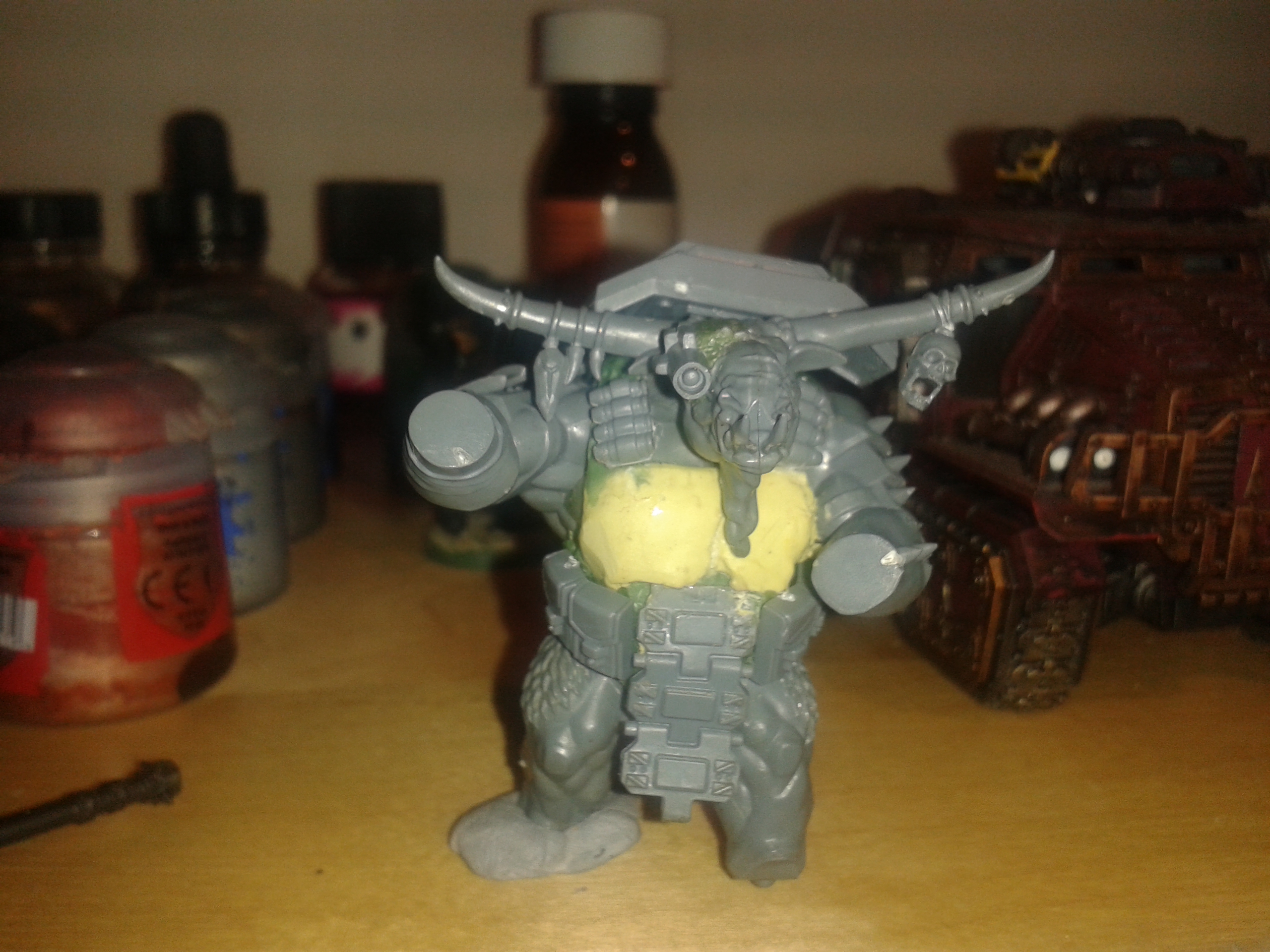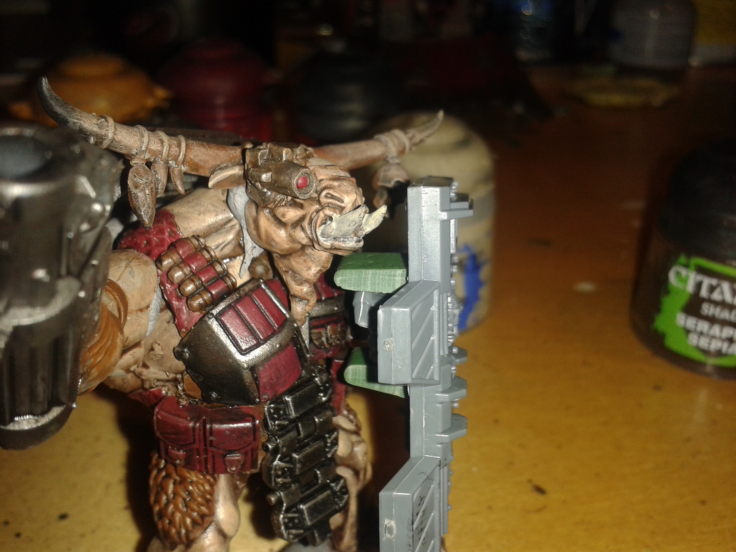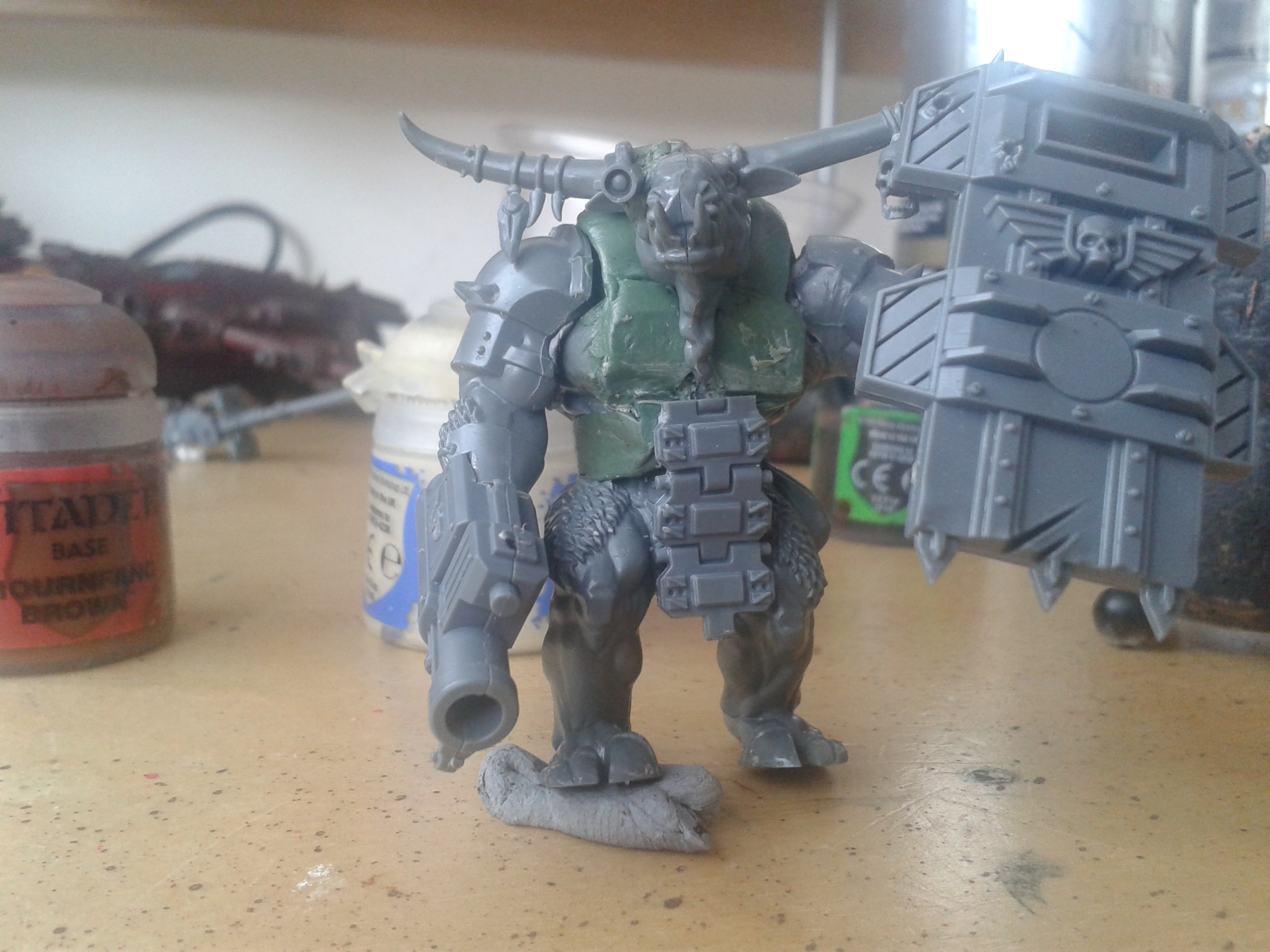 Managed to get some work done on my minotaur bulgryn bonehead today. I wasnt happy wit the armour I built, so I started again from scratch. Another snag I hit is the size of the slabshields they look tiny in conparison to the minotaur models. I might have to build new ones from plasticard.