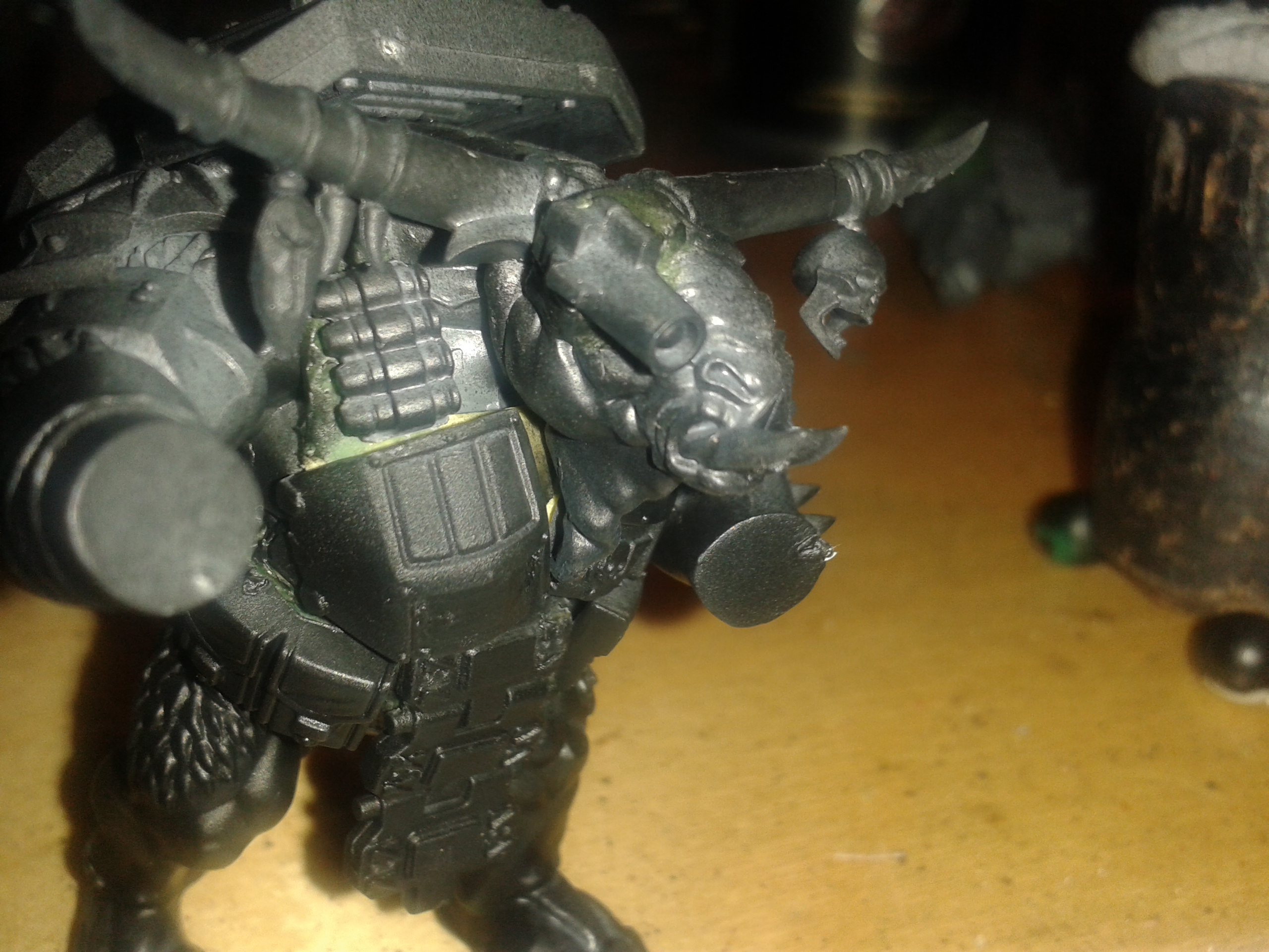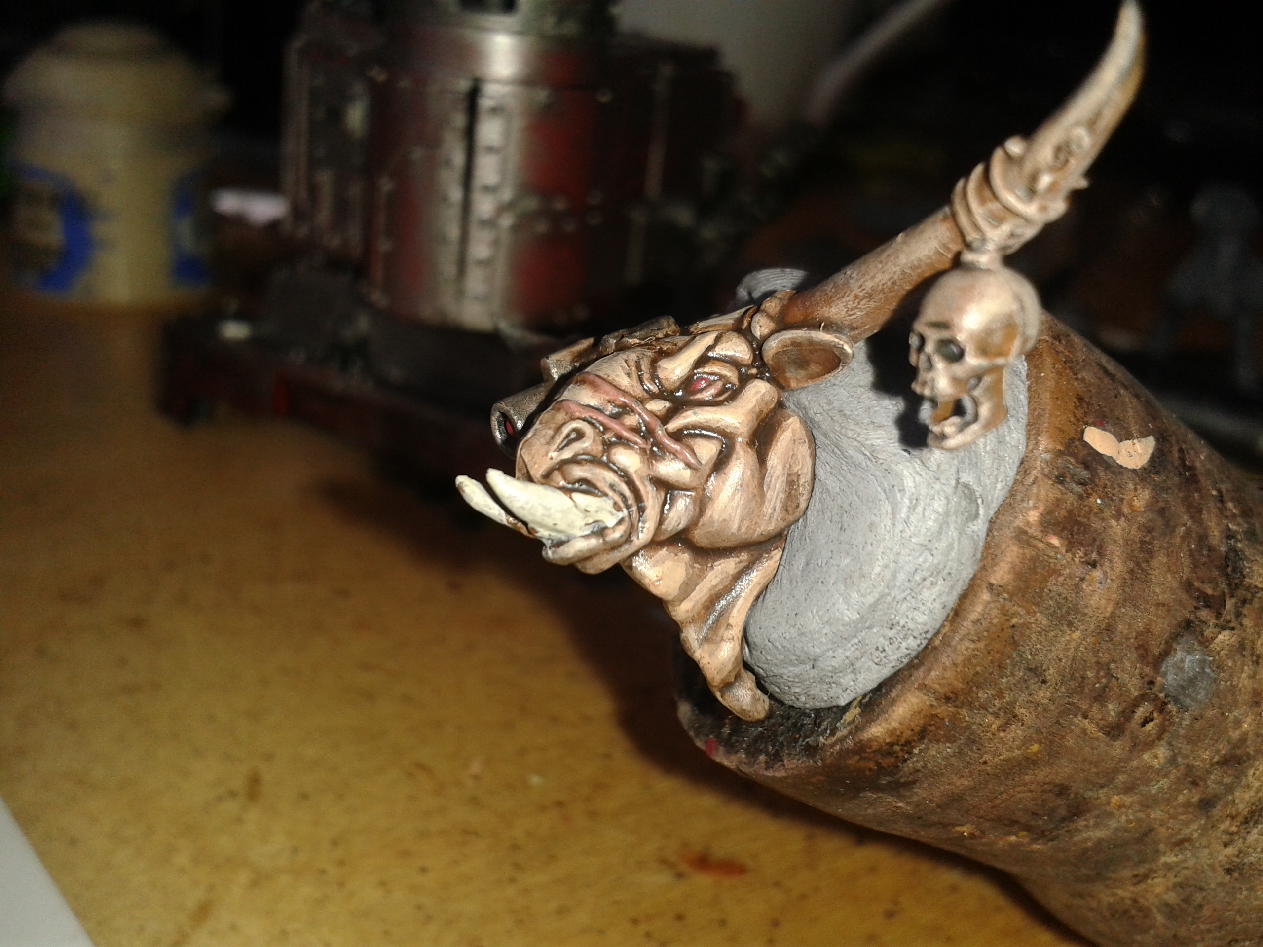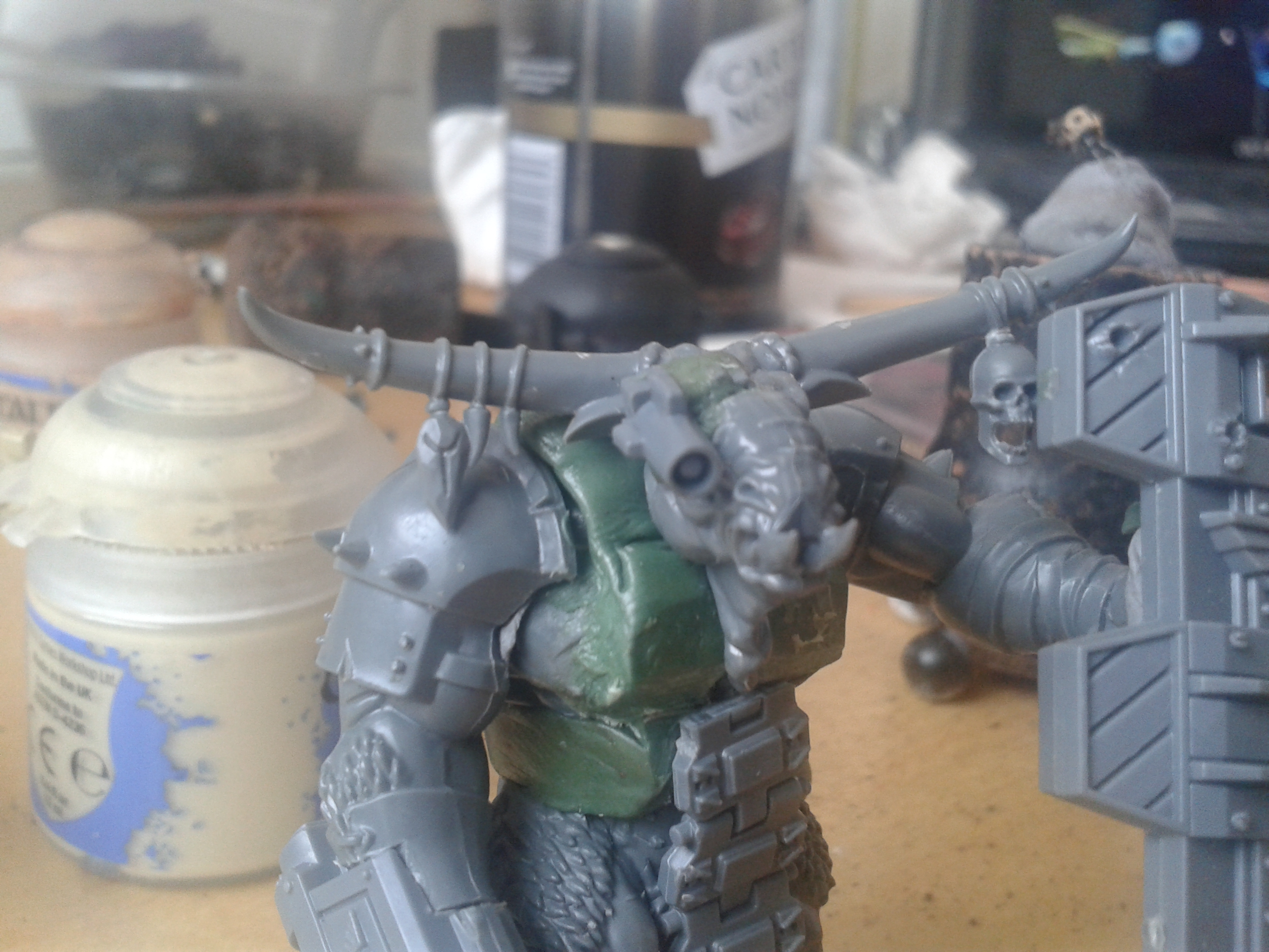 Managed to get some work done on my minotaur bulgryn bonehead today. I wasnt happy wit the armour I built, so I started again from scratch. Another snag I hit is the size of the slabshields they look tiny in conparison to the minotaur models. I might have to build new ones from plasticard.