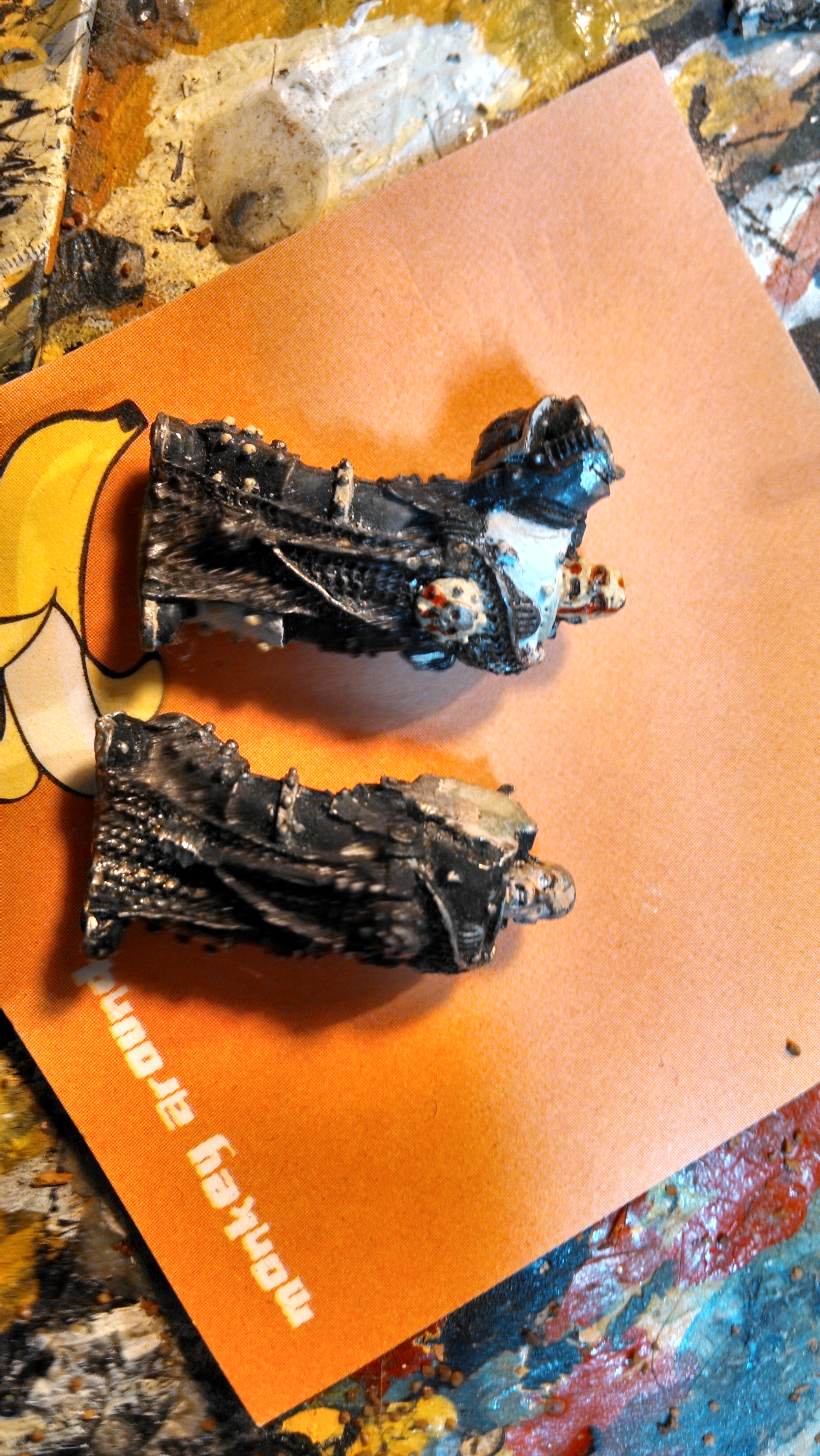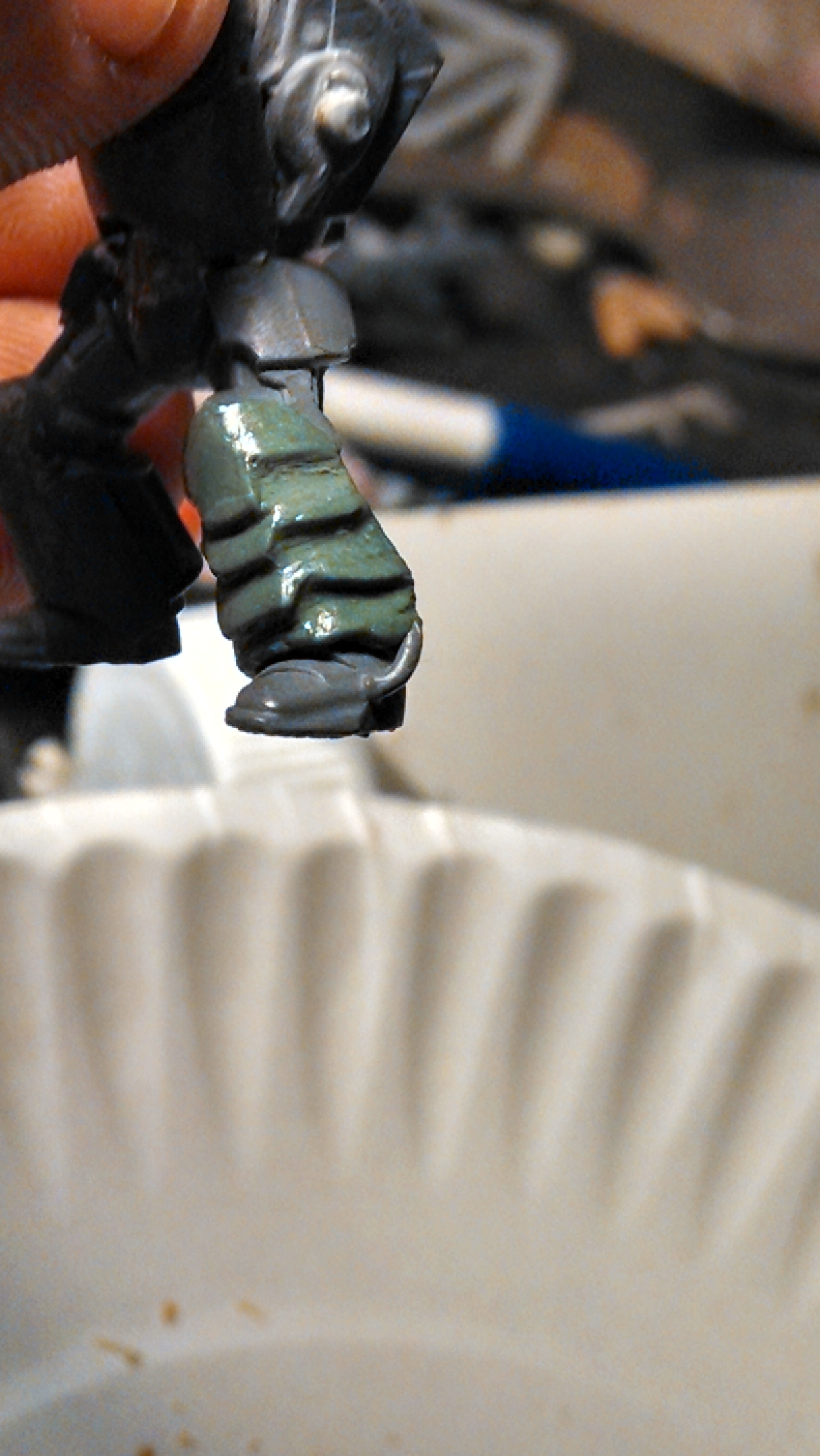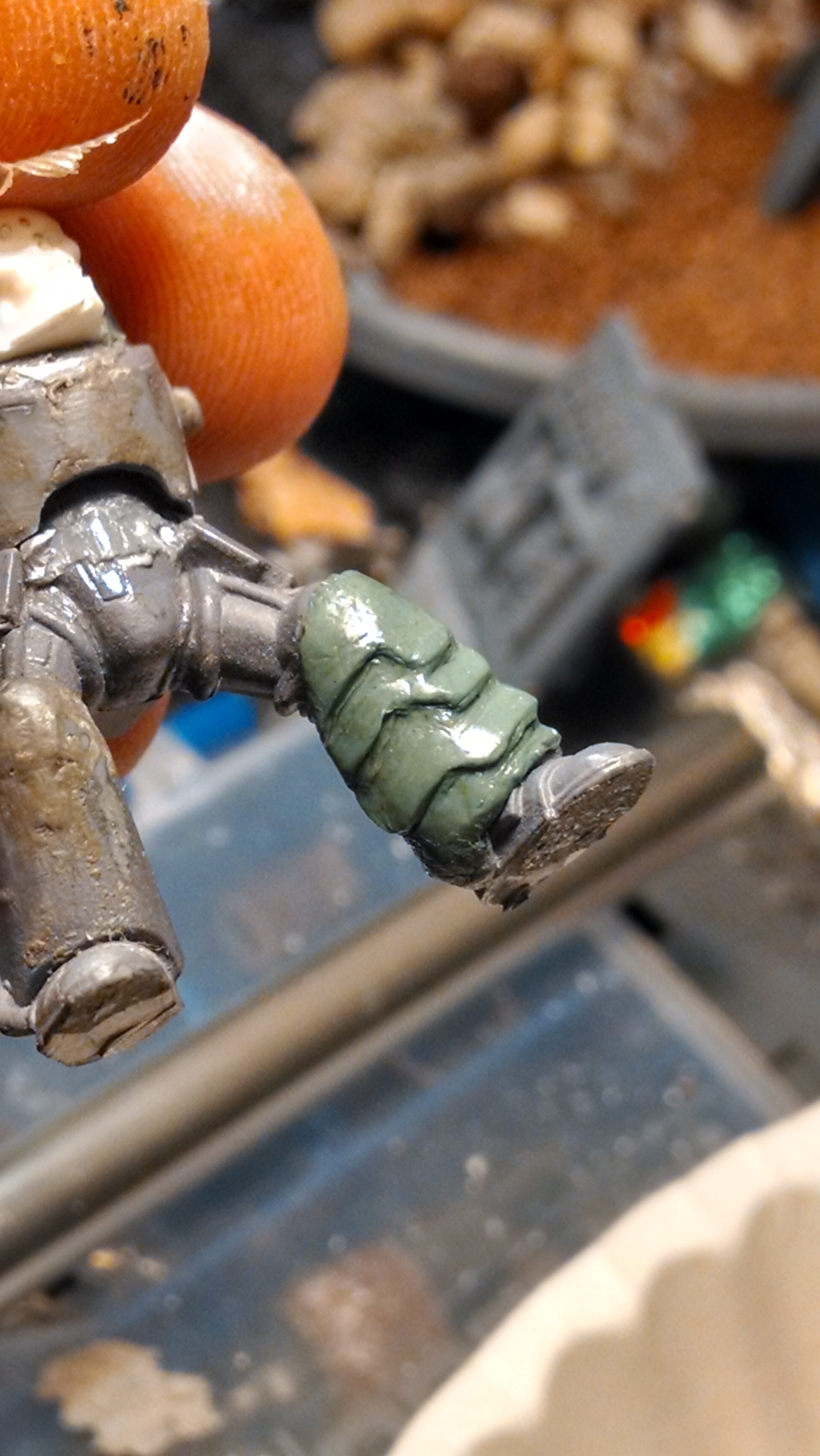 And here's a practice run for what I want to do for his shin guards. I think it'll work fine. I'm a bit proud of myself on that sculpting job honestly.