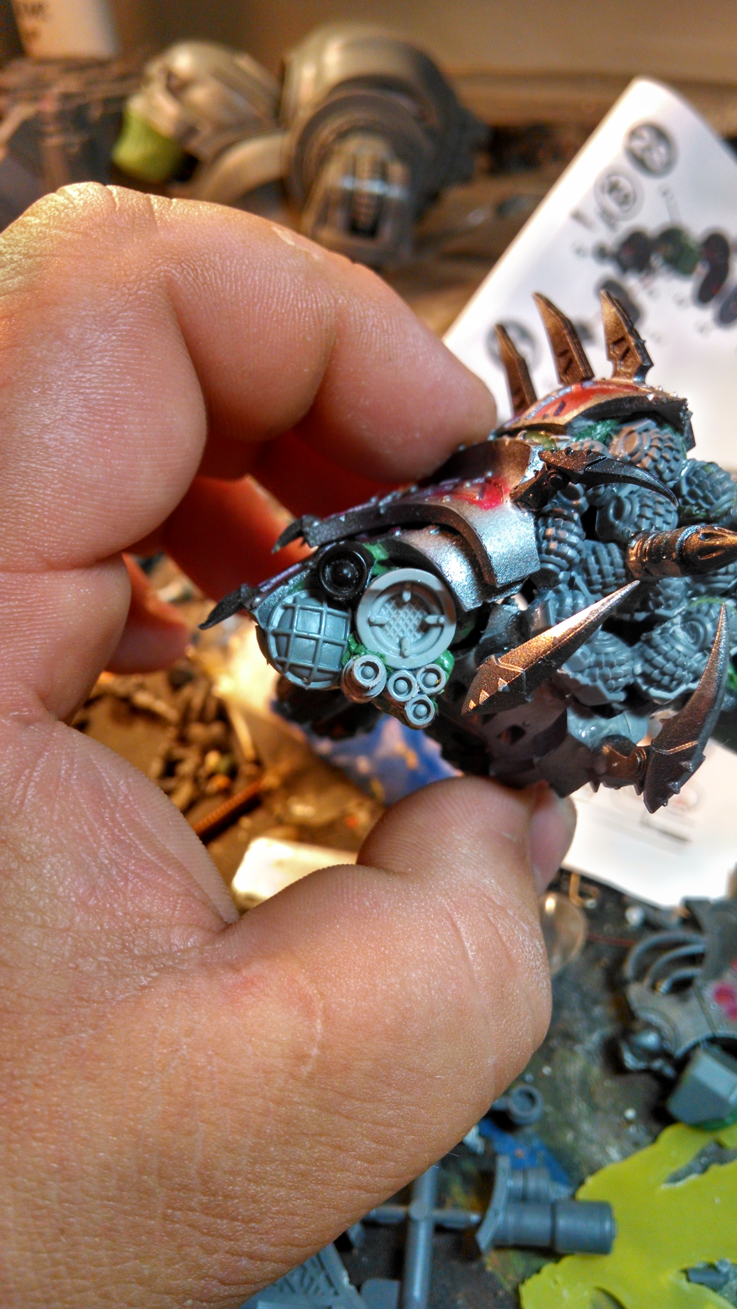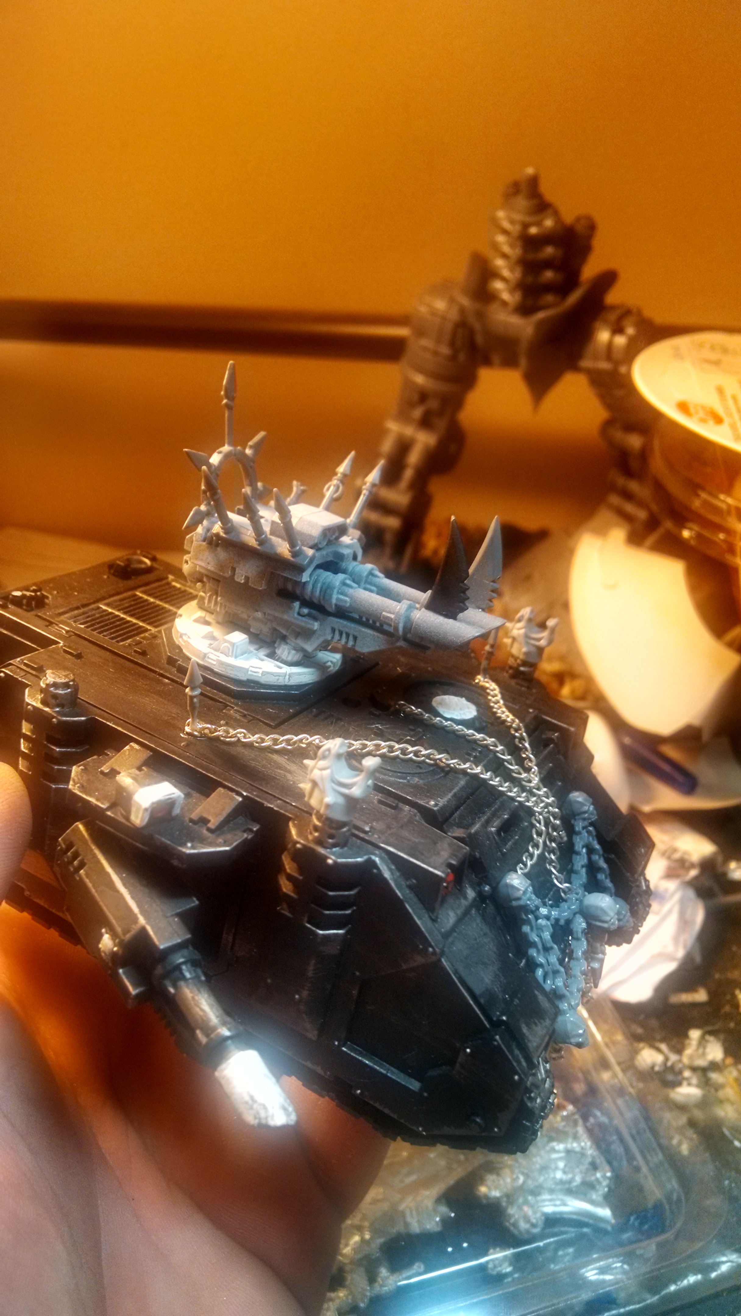 Chaos tanks are tough to do. The kit is seriously the sm kit with a sprue of spikes and trophy racks. Making tanks with as much character as my other models has been a bit of a stumbling block for me.