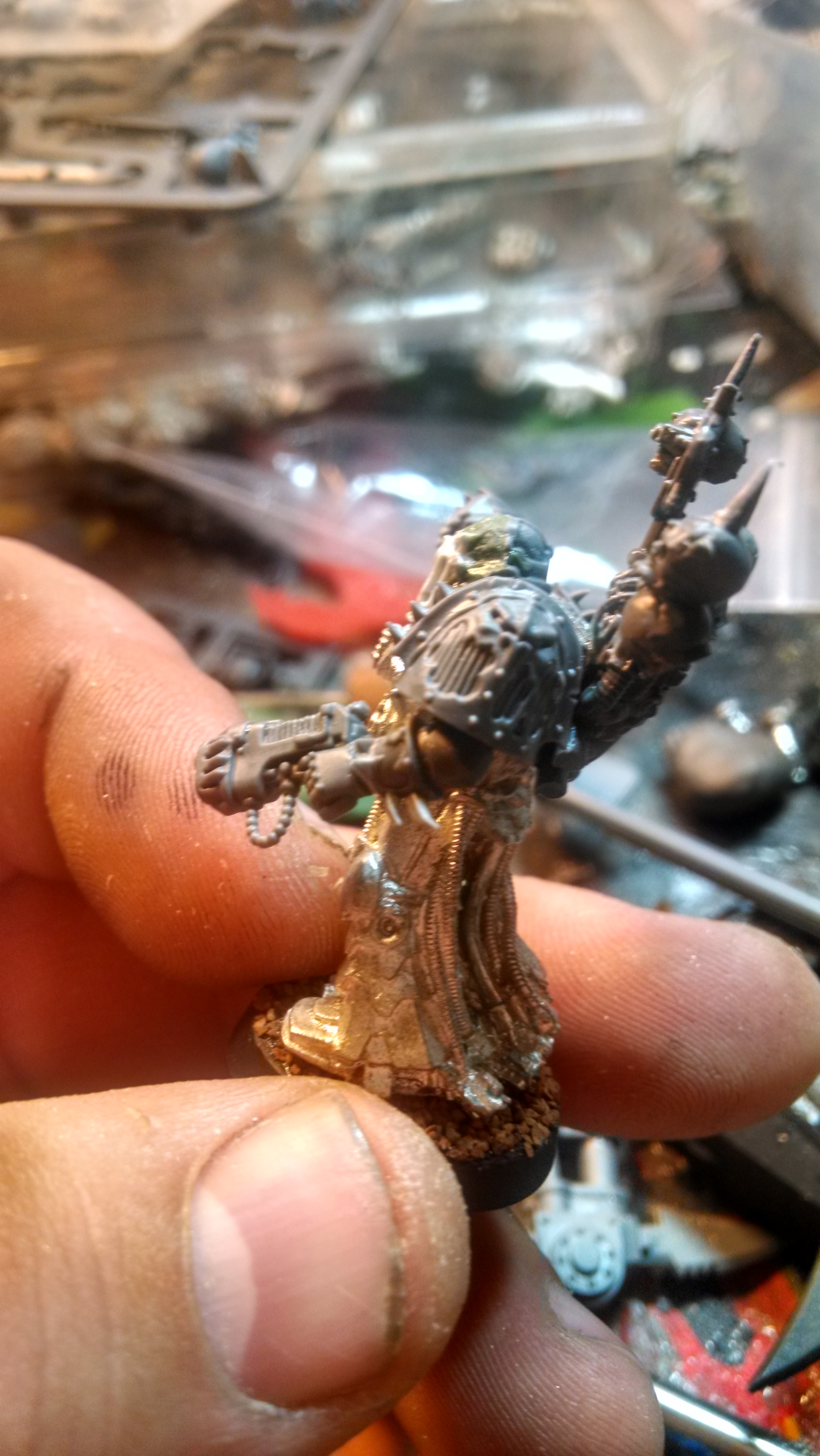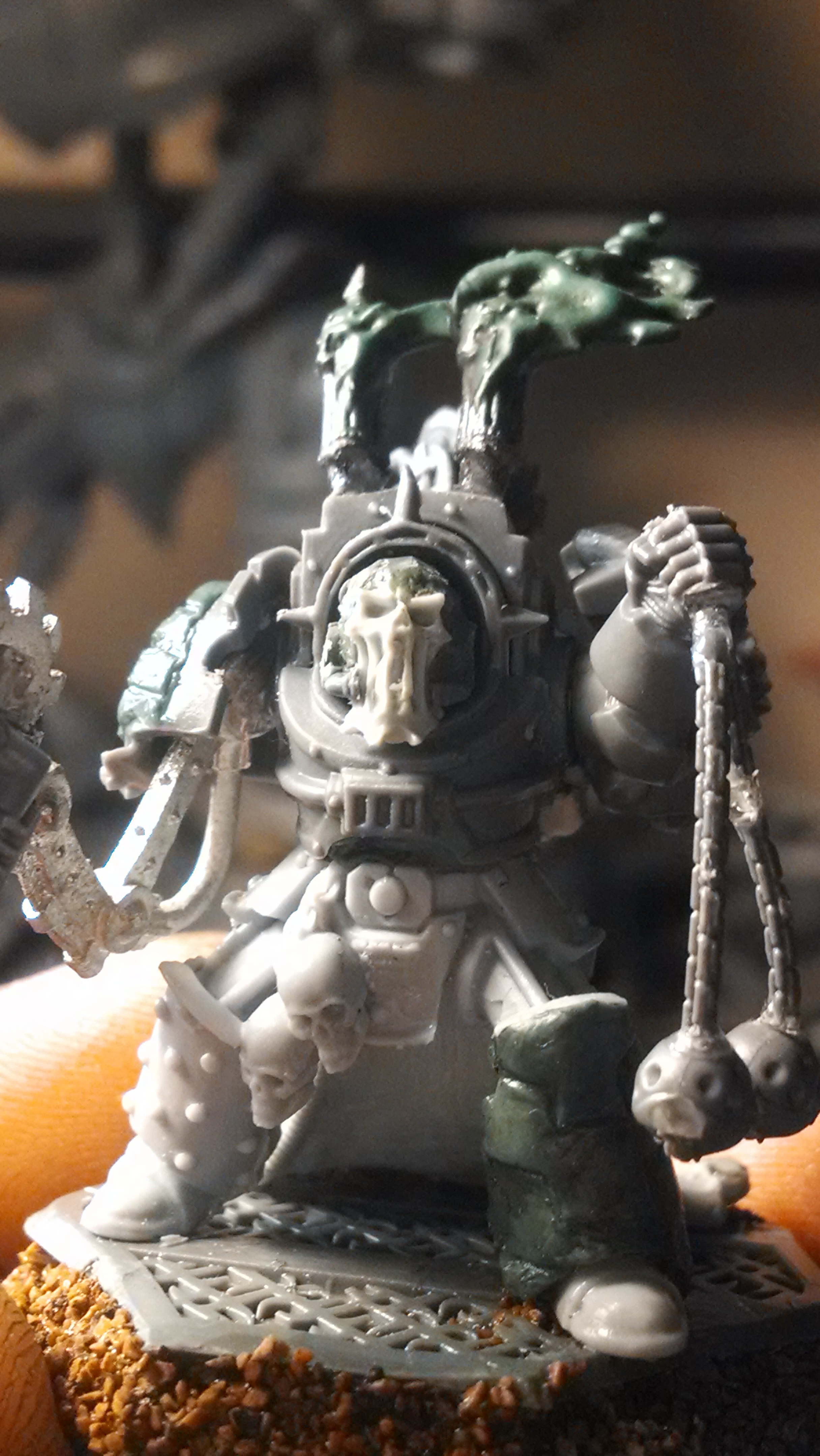 The Typhus is coming along nicely. I'm really liking those Chosen, though. Very bloody nice, and unique as well since I doubt we'll be seeing a lot of that GD figure cut up and converted like that! What is the lower body/torso of the third one made of?