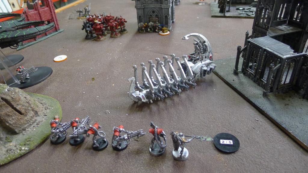 BTW, you might want to consider redesigning your list slightly. Your list currently matches up well against my AV13 Necrons, but you are going to find it works much, much differently against something like my Wraithwing Necrons. A good tournament Take-All-Comer's list needs to be very well rounded so that it can handle any threat thrown at it.