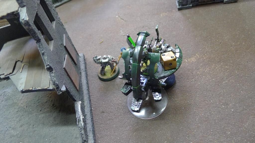 The riptide does manage to take off 1W from my bargelord before I sweep him in combat.