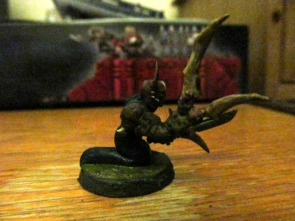 So today completed the second cultist built but the forth to be painted. His base has being given a test of a texture paint to give the ground some depth when the rot has being applied over it.